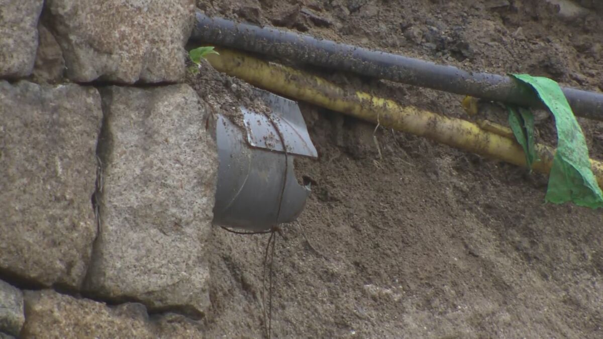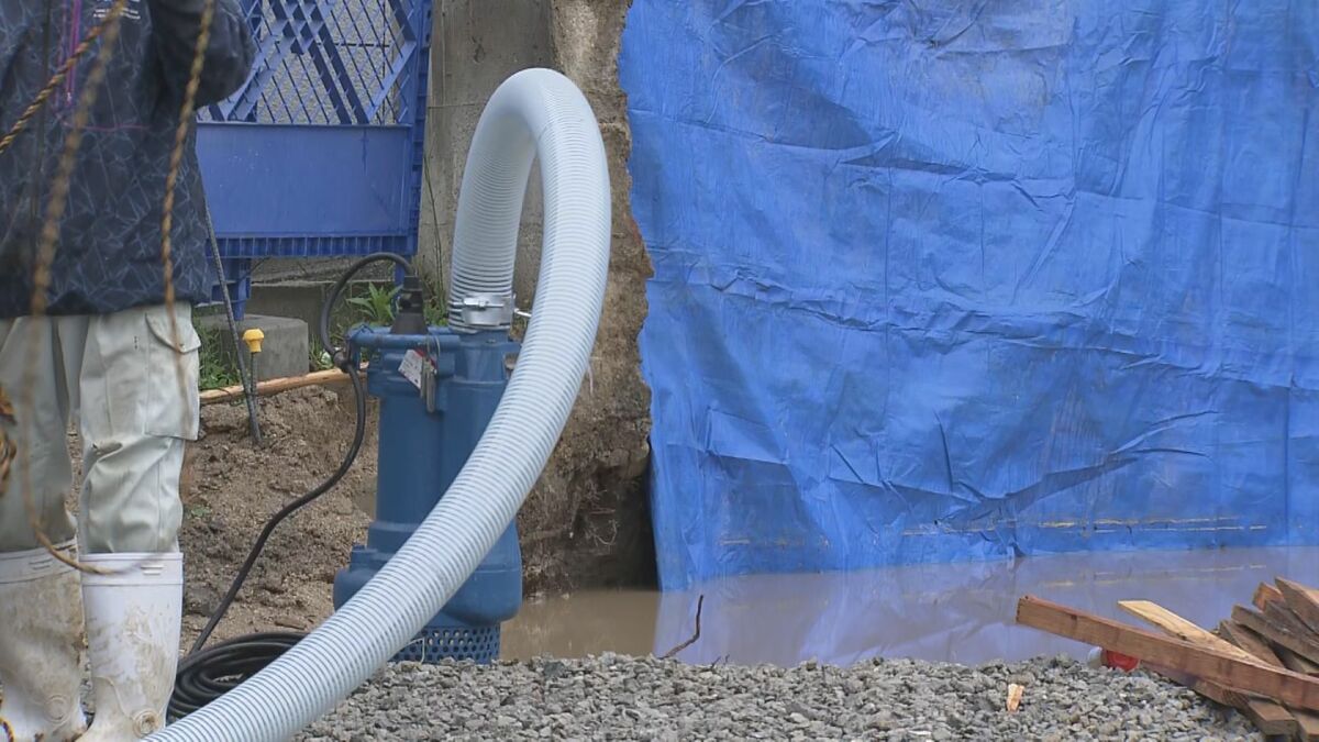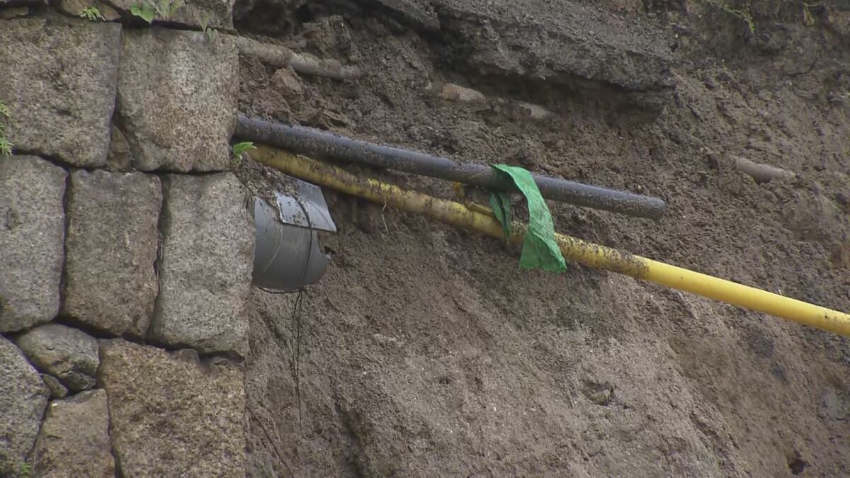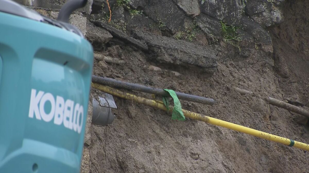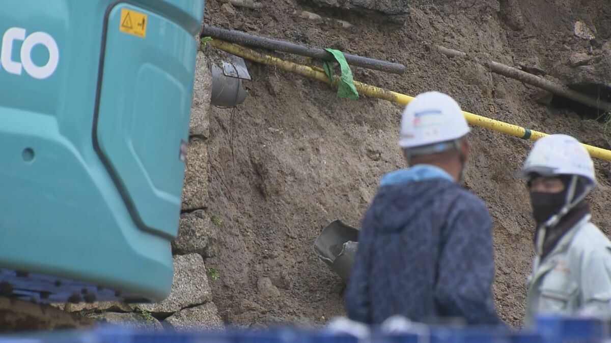 ▶【画像を見る】住宅の石垣が崩れた現場 複数の管がむき出しに 現場では復旧作業が続き(21枚)