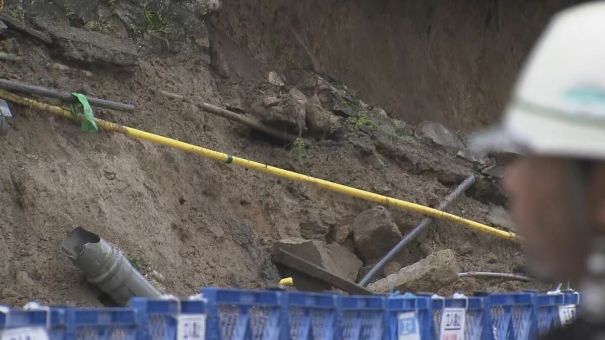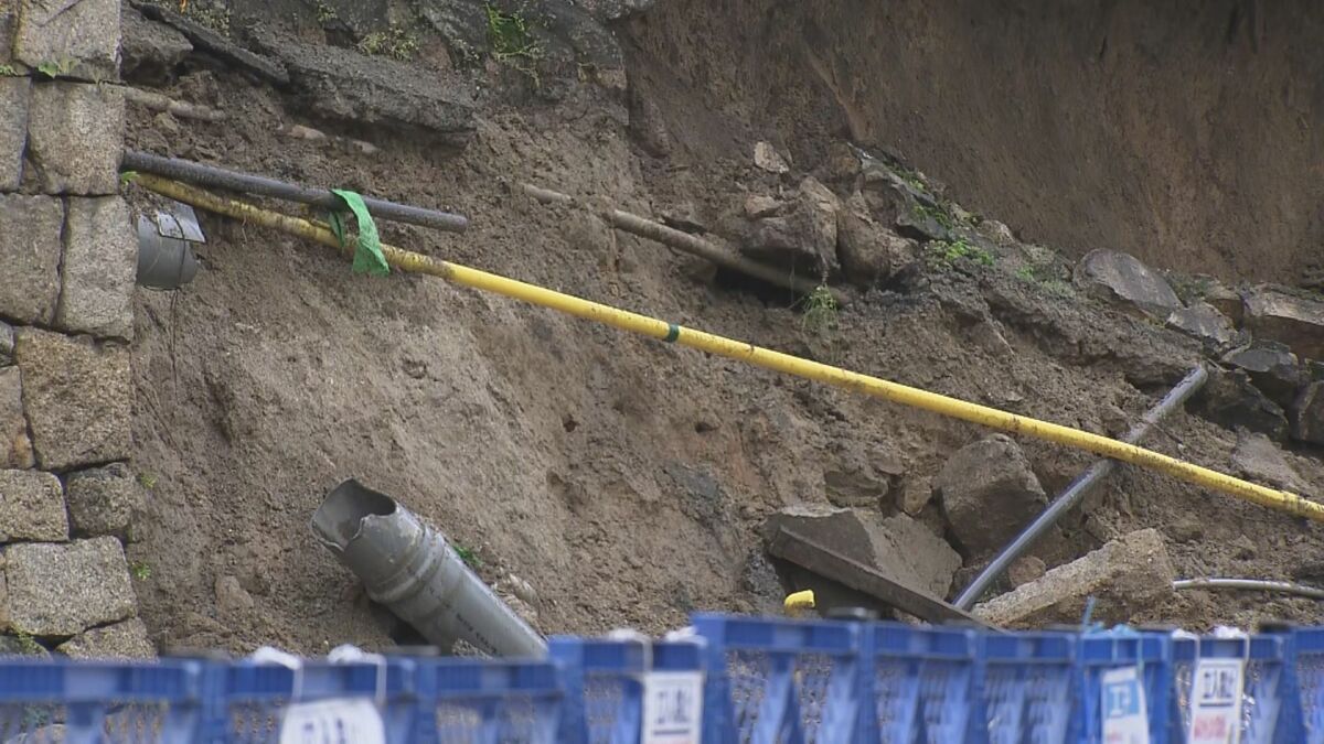 広島市の住宅地で23日、石垣が崩れガス管や水道管が損傷しました。この影響で周辺で断水が起きています。