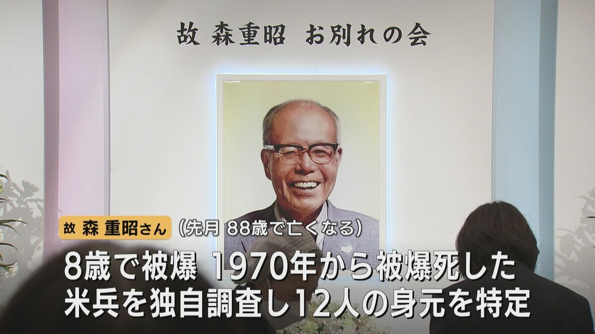 広島の原爆で犠牲になったアメリカ兵の調査に人生を捧げ先月、88歳で亡くなった森重昭さんのお別れの会が、広島市内で営まれました。