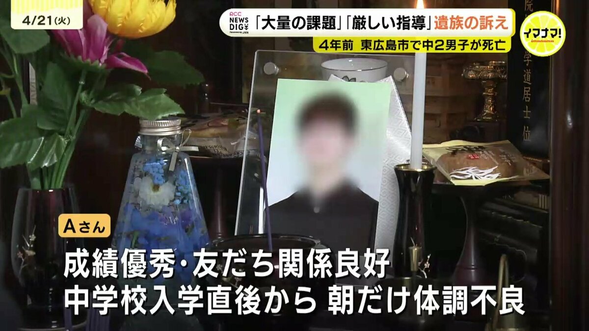 2022年8月、14歳だったAさんが自ら命を絶ちました。背景には、「学校からの大量の課題」と「教員からの厳しい指導」への恐怖があったとみられています。