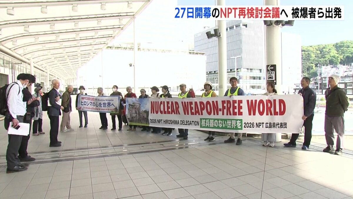 27日からアメリカの国連本部で始まるNPT(核拡散防止条約)の再検討会議に向けて、現地で活動する被爆者らが広島を出発しました。