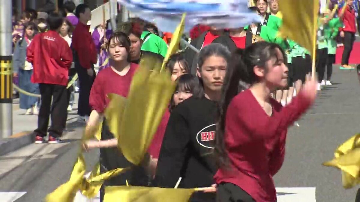 創意工夫をこらした衣装と振り付けで海岸通り320㍍を踊り尽くします。