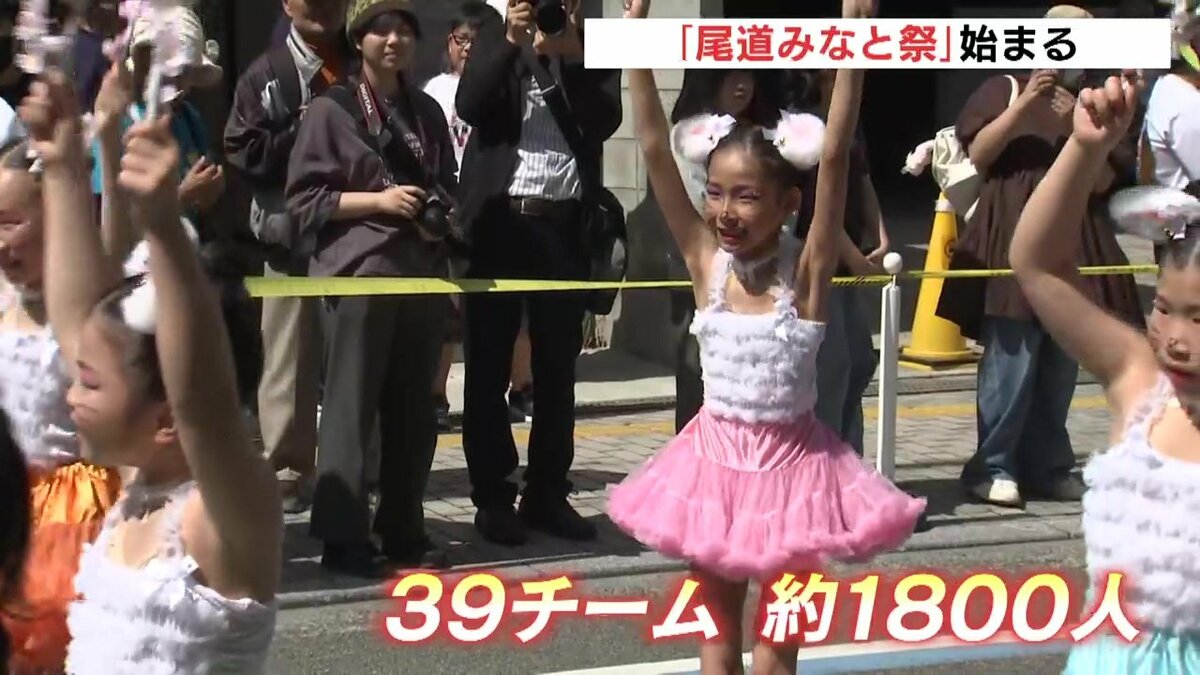 尾道みなと祭のメイン「ええじゃんSANSA・がり踊り」は、オリジナルの振り付けなどで表現を競うコンテストで審査対象でないカジュアル部門を含め39チームおよそ1800人が出場しました。
