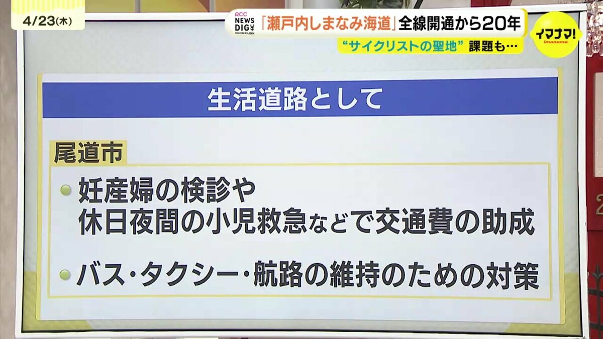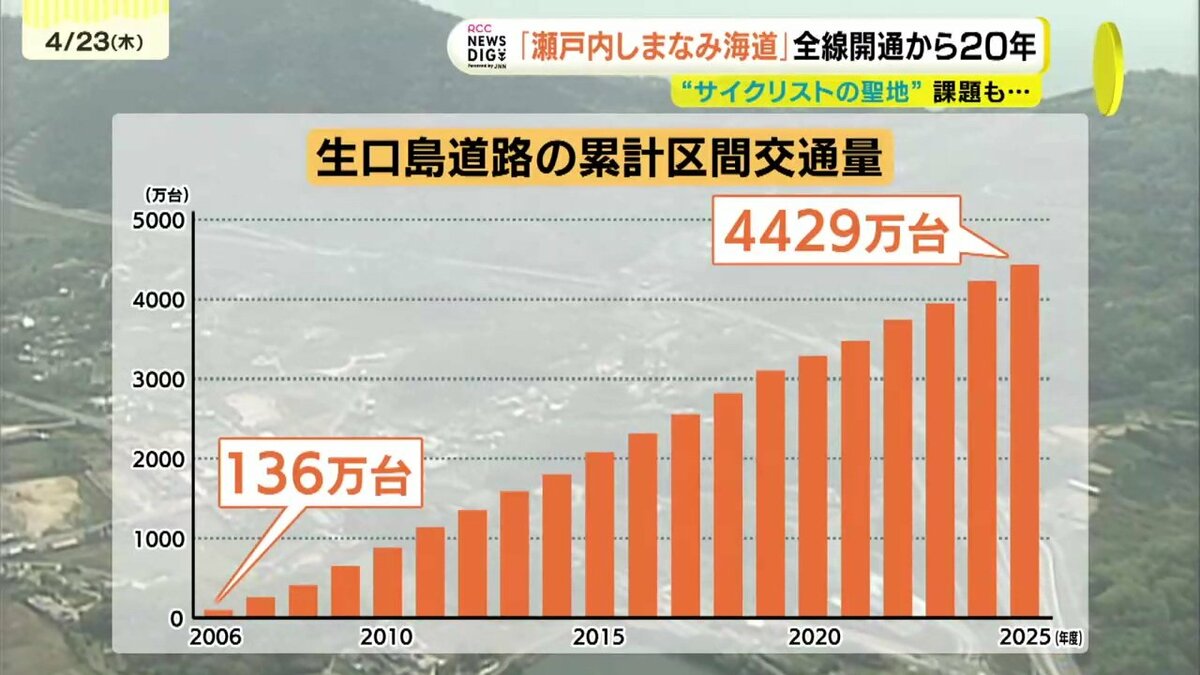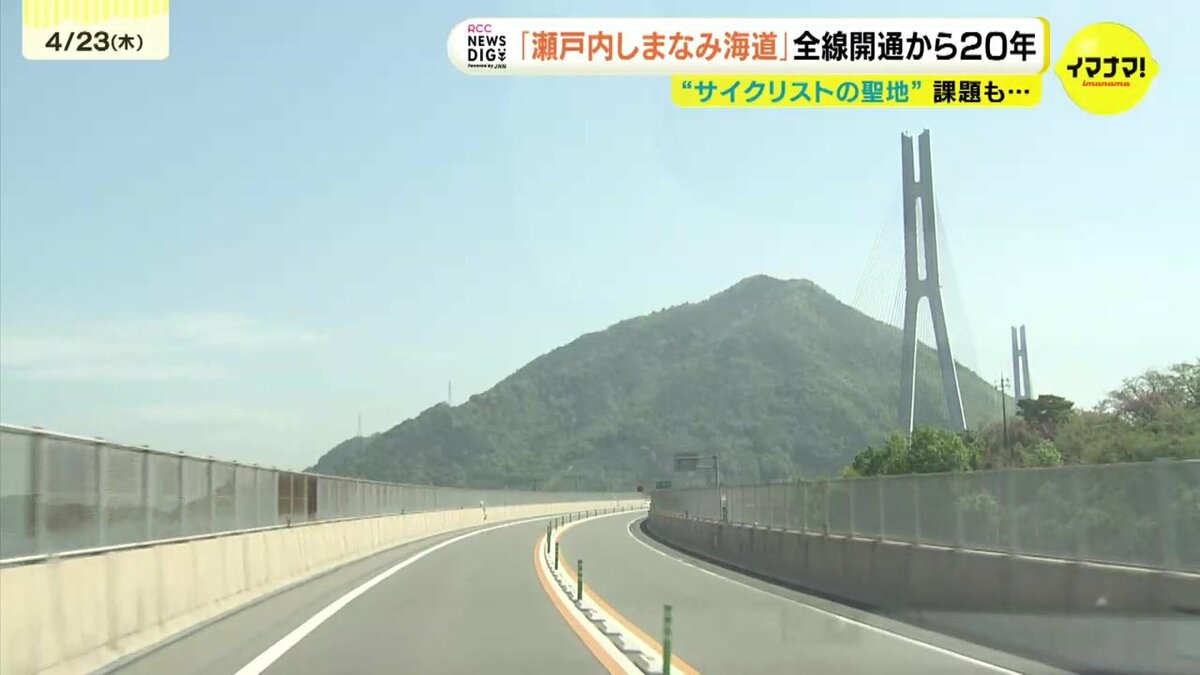 今月末、全線開通から20周年を迎える「瀬戸内しまなみ海道」。「サイクリストの聖地」と呼ばれるなど成果の一方で、課題もあります。