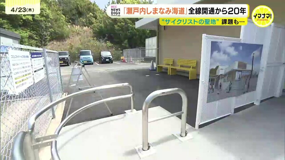 今週リニューアルオープンした瀬戸田パーキングエリアでは、大きな変化がありました。一般道から入れるコミュニティゲートを設け、地域の住民を始め、サイクリストも呼び込みたい狙いです。
