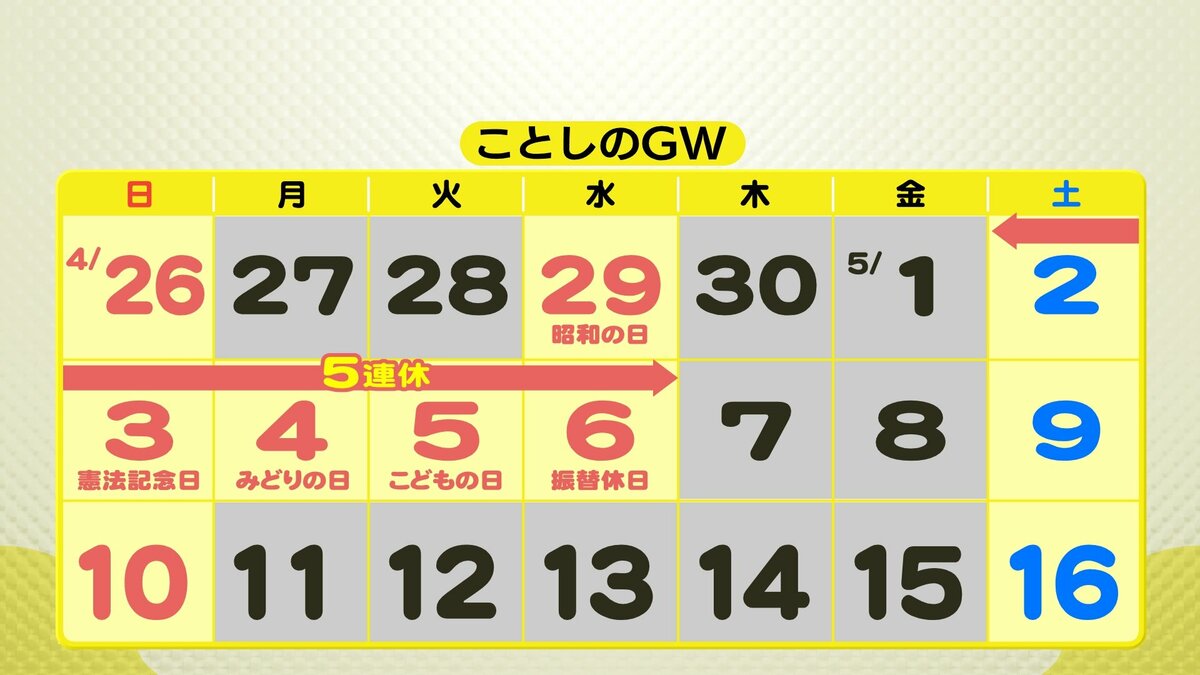 ことしのGWは5月2日~6日が「5連休」になっています。