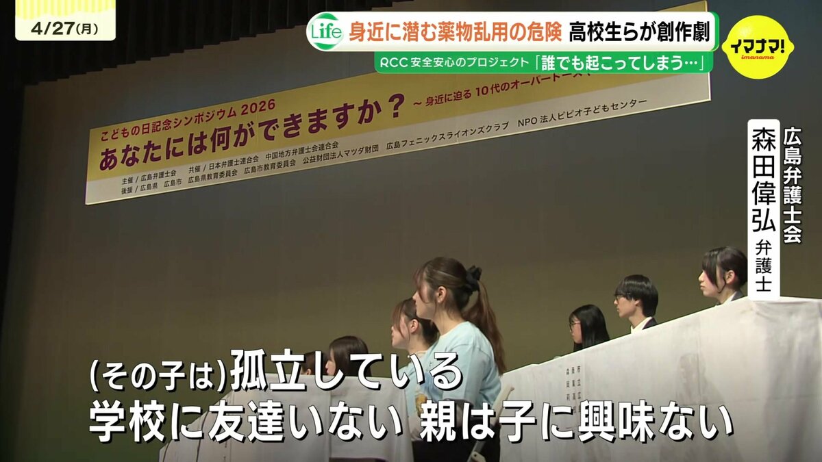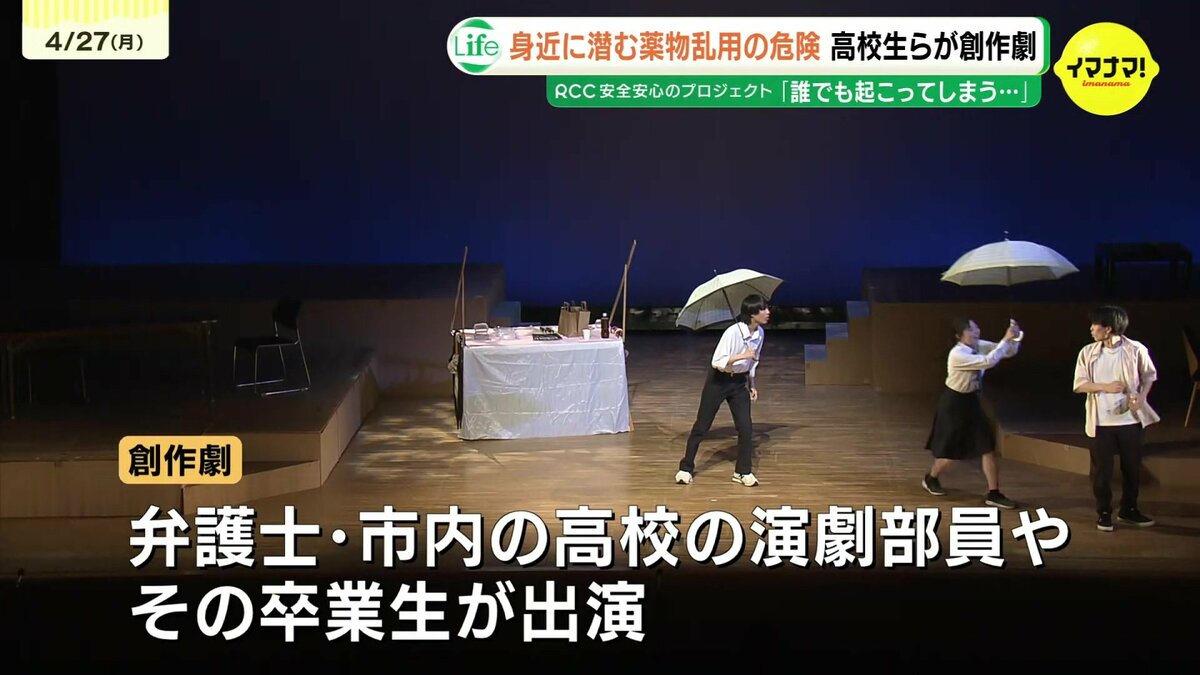 26日に広島弁護士会が開いたシンポジウムで上演されたのは、若い世代に迫る薬物やオーバードーズの恐ろしさを伝える創作劇です。