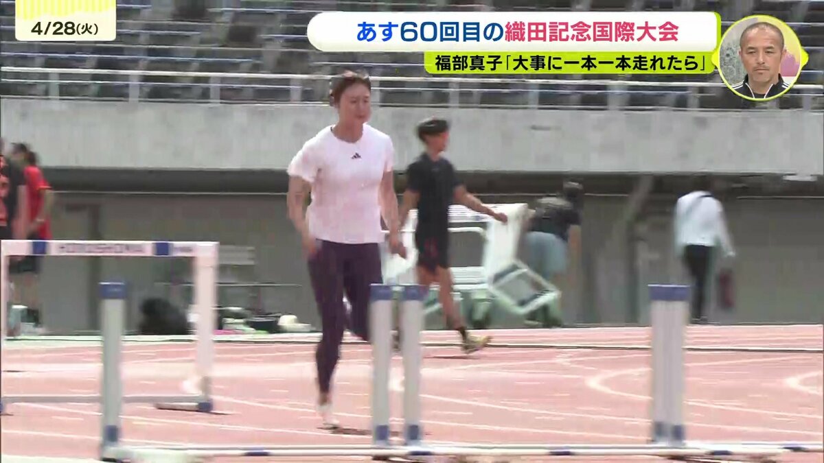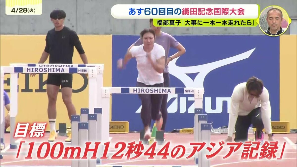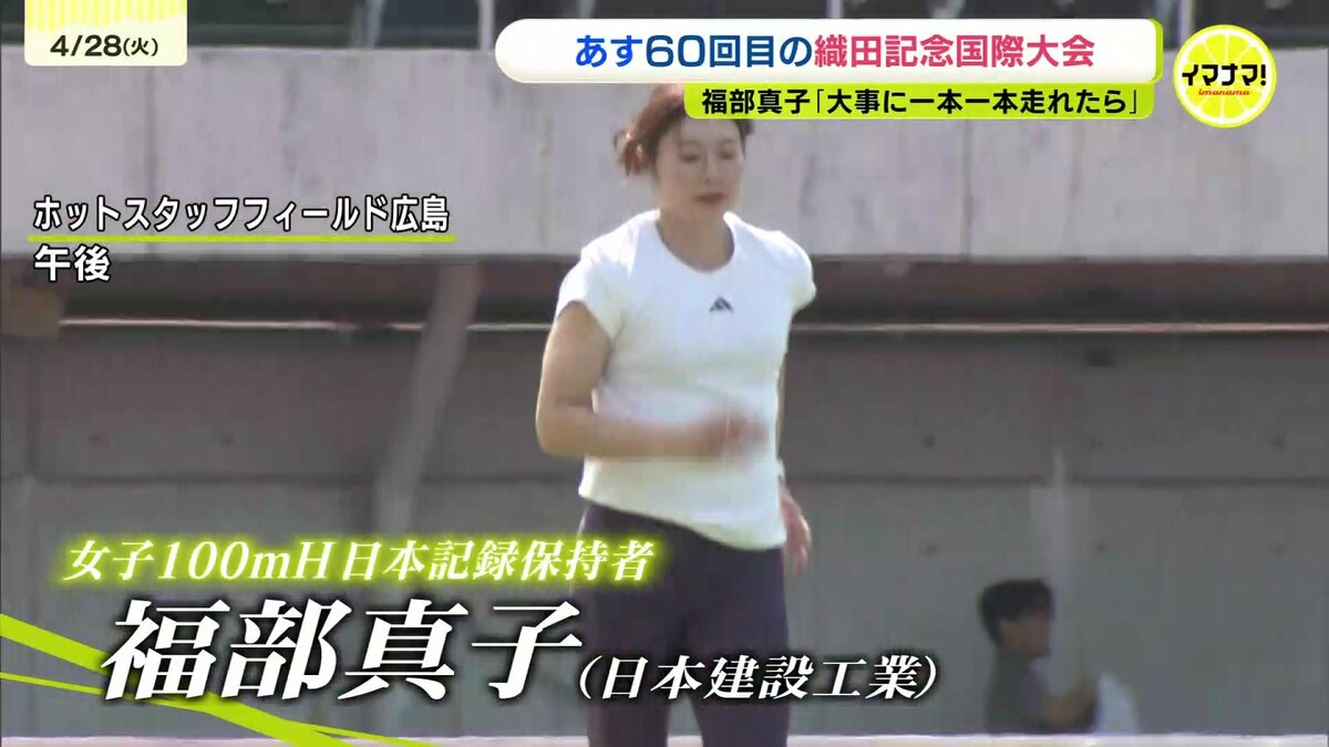 29日、織田幹雄記念国際大会が広島市で開催されます。多くのトップアスリートの出場が見込まれるなか、女子100mハードル日本記録保持者の福部真子選手が前日練習を行いました。