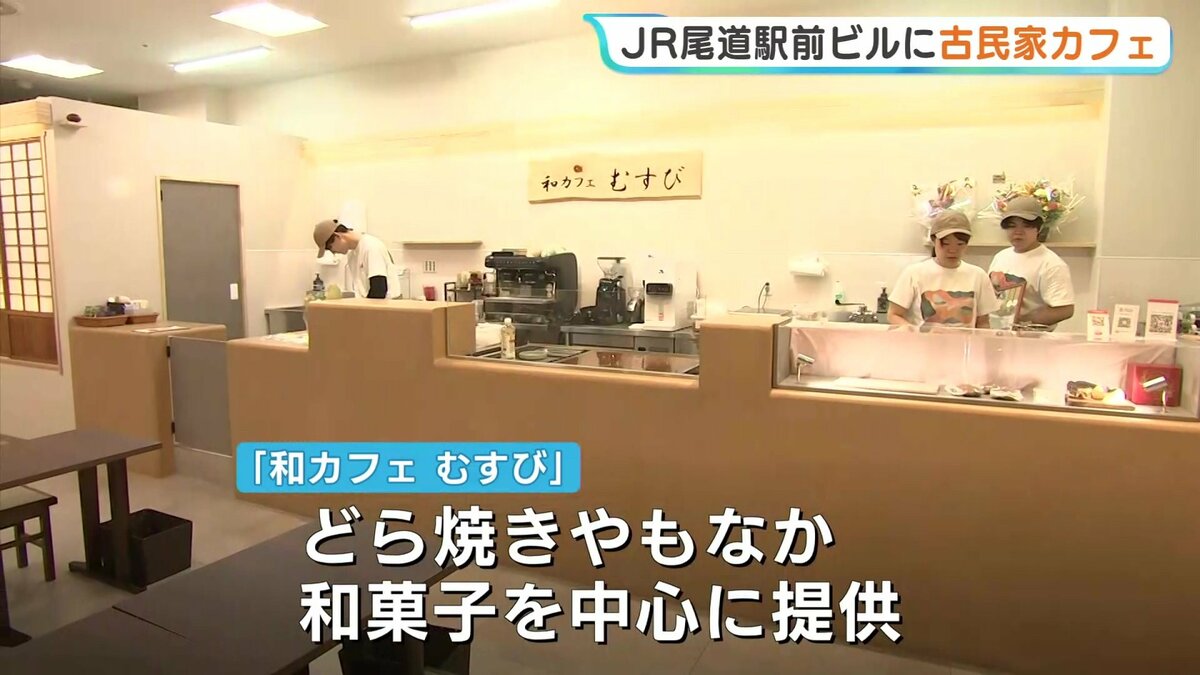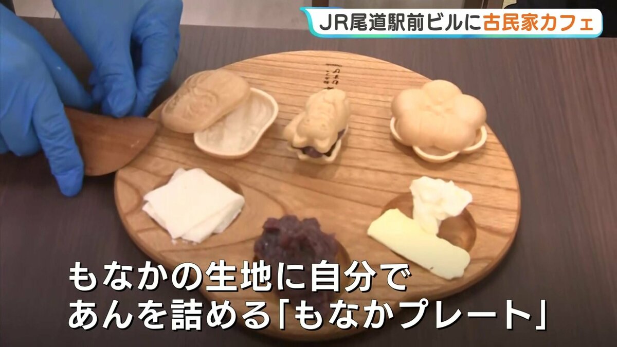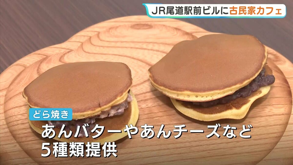 尾道駅前のビル1階に新たにオープンしたのは、三原市で古民家カフェを営む「むすび」の新店舗です。店名は「和カフェむすび」。どら焼きや最中といった、和菓子を中心に提供しています。どら焼きは、あんバターやあんチーズなど5種類を提供。このほか、最中の生地に自分であんを詰めて味わう「もなかプレート」もあります。三原市の店舗で大人気のバスクチーズケーキも並びます。