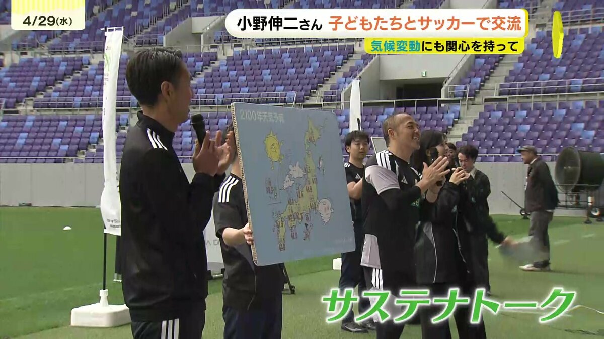 4月29日に行われたのは、明治安田が協賛する、Jスマイルフットボールツアーです。会場には、元サッカー日本代表の小野伸二さんと森崎浩司さんが講師として参加しました。
