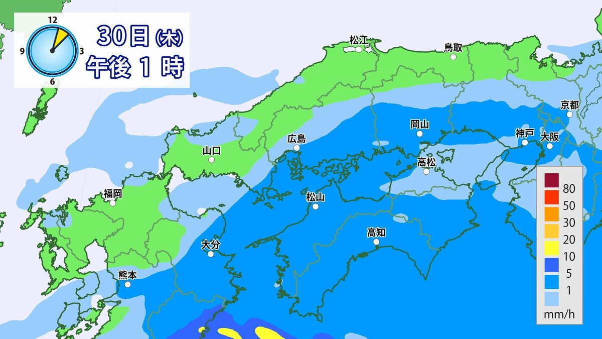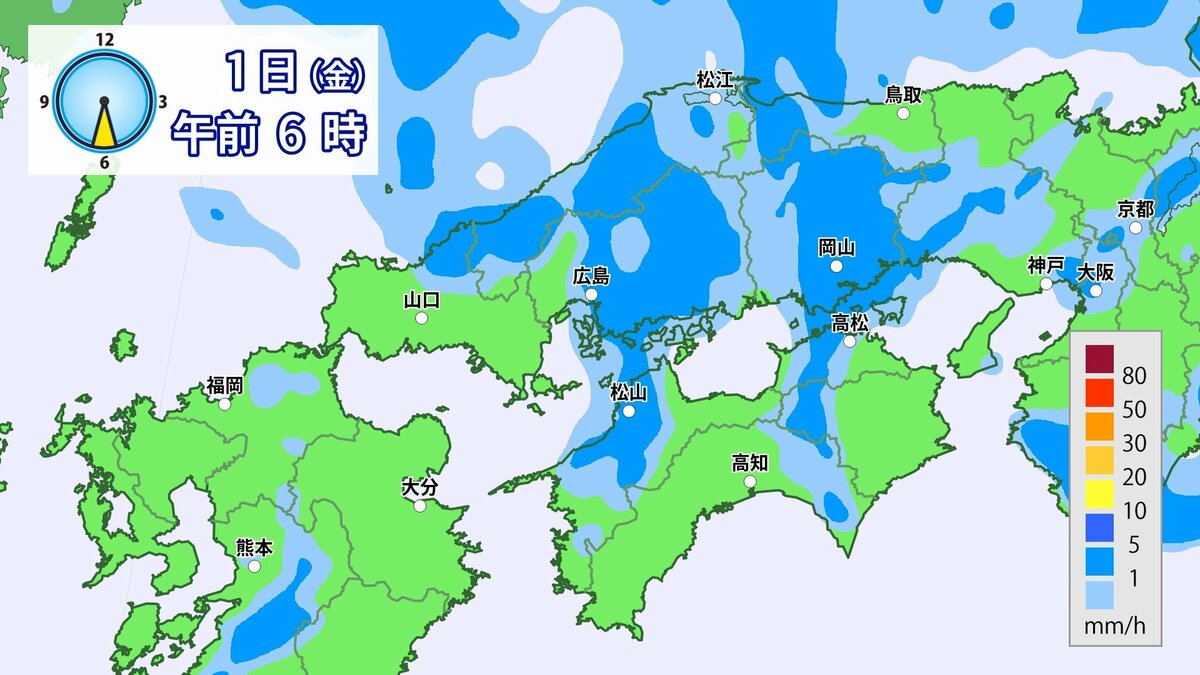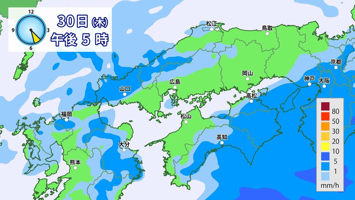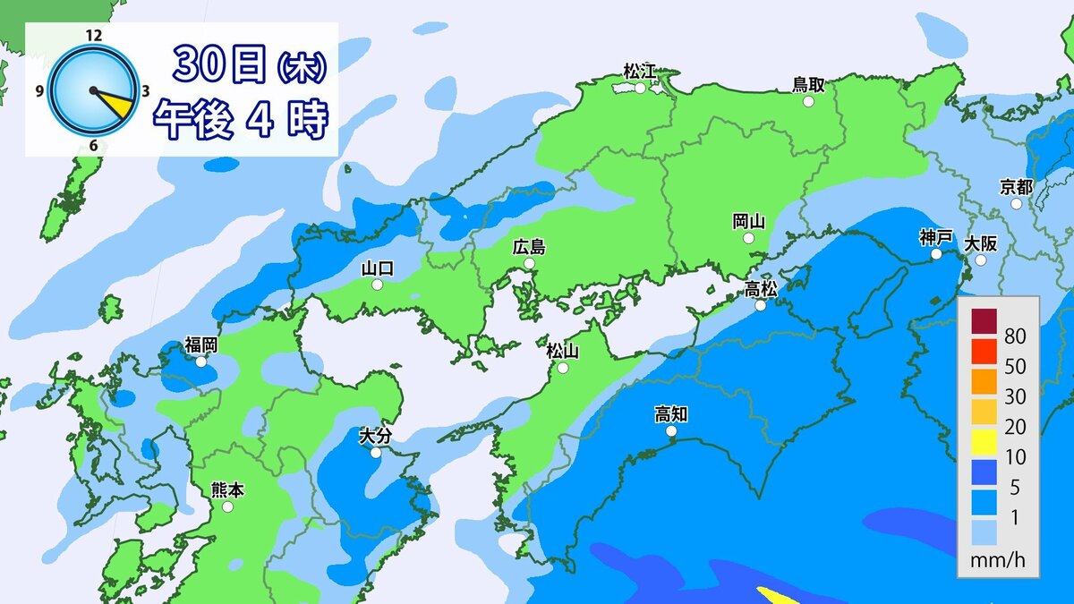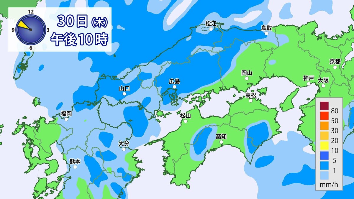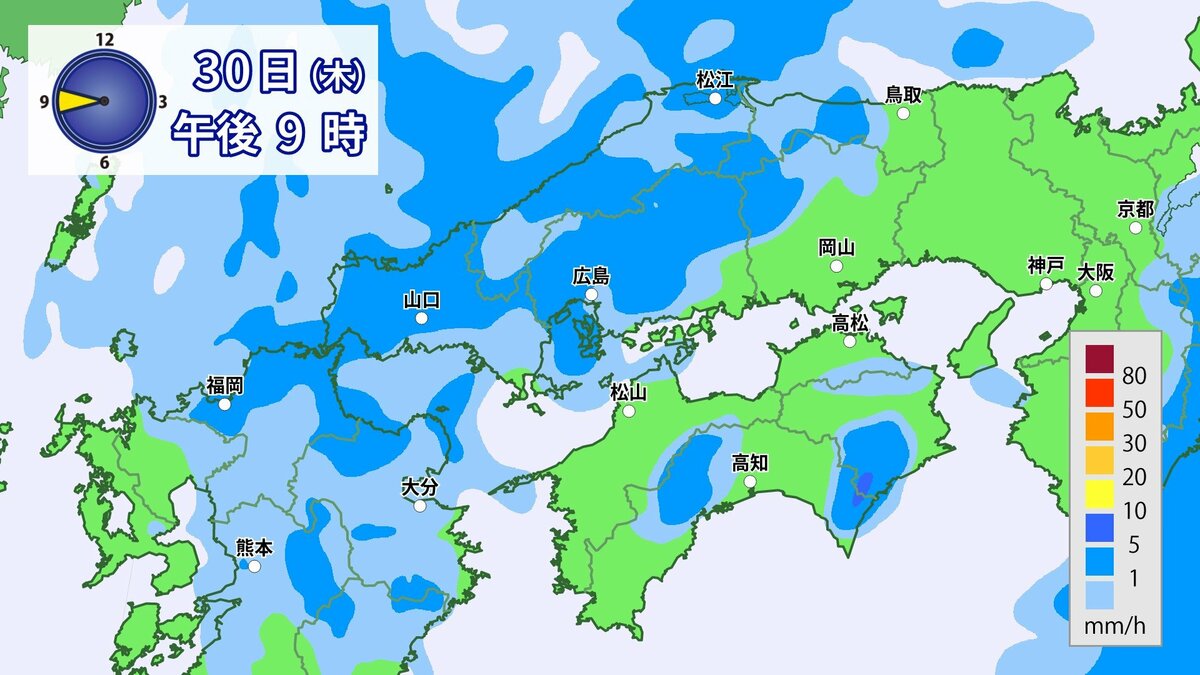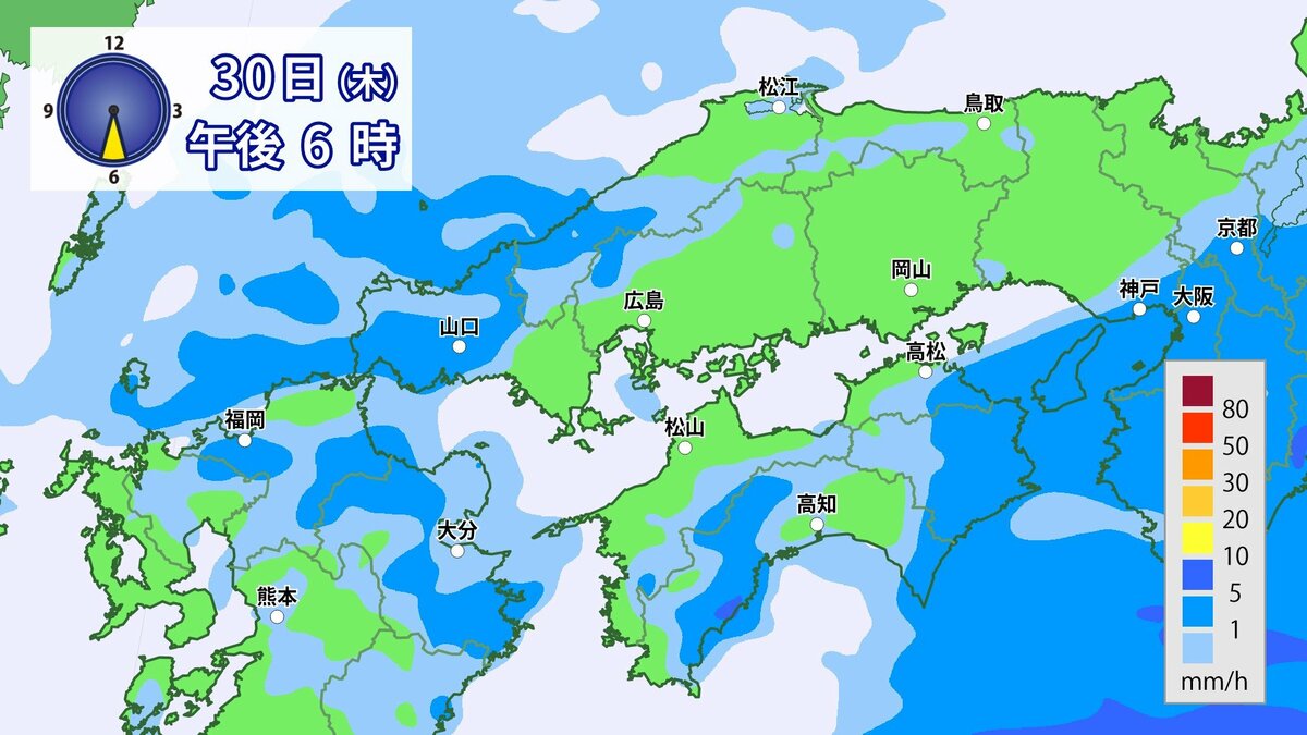 きょう30日(木)の広島県の朝は、雨が降っています。最低気温は、広島12.3℃、呉12.6℃、福山11.8℃、三次11.0℃でした。