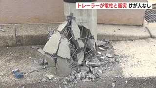 「20トントレーラーが電柱と衝突した」電柱は根本から損壊もけが人や停電はなし バックの際にハンドル操作を誤ったか 広島・南区