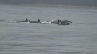 宮島沖でイルカの群れ(約10頭)を発見! 厳島神社の大鳥居やフェリーの近くを悠々と 海上保安部の職員が船から見つける 広島