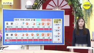 【きょう11/18(火)広島天気】日中の気温がグッと急降下 きのうより約10℃低い地点も 午前中は通り雨