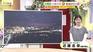 【きょう11/14(金)広島天気】よく晴れる一日 日中ぽかぽか陽気に 一日の寒暖差大