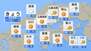 【きょう11/10(月)広島天気】西高東低の気圧配置に 天気は回復傾向 夜から冷え込みに注意