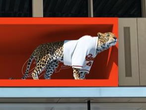 広島駅ビルにヒョウの「アカツキ」が登場、飛び降りてきそうな裸眼3D映像