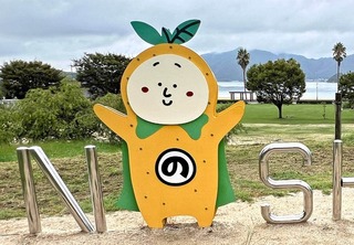 因島に「はっさくん」モニュメント、アメニティ公園のフォトスポットに