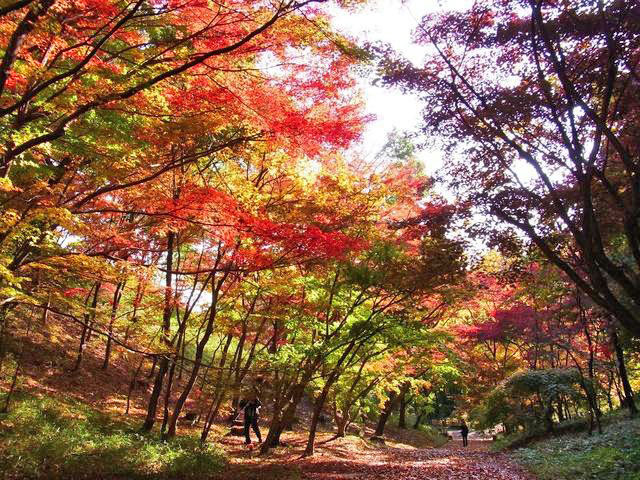 園内の樹木が色とりどりに紅葉する