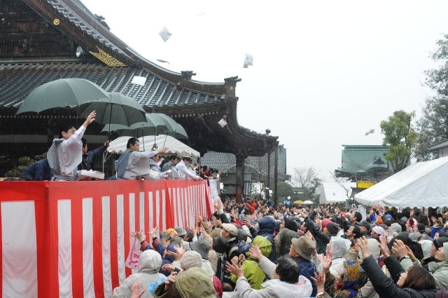 厄除け開運の大般若転読法要に引き続き、福豆・福もち撒きを行い、多くの福を授ける行事。毎年多くの人が足を運ぶ、地域伝統の催し。