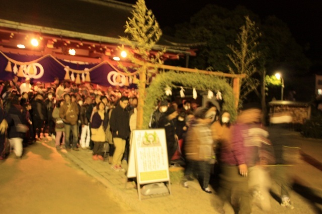 節分は24節気の一つ「立春」の前日を指し、お正月とは別の意味で新たな1年の始まりの時。8時半、古札焼却祭を斎行し夜まで火を焚く。19時から節分祭を斎行。参列者に福豆が配られ、年男による豆撒き、茅の輪くぐり神事を行う。茅の輪くぐりは、夏越大祓に加え清々しい気持ちで立春を迎えられるように行っている。