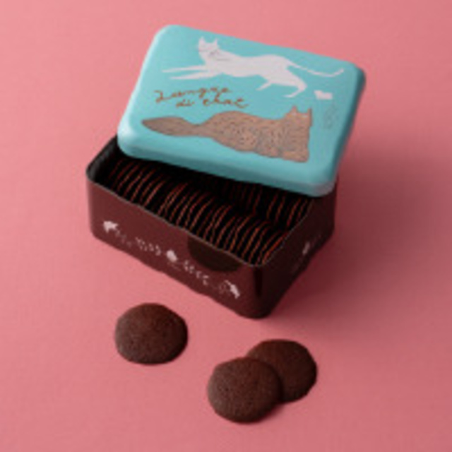 兵庫県尼崎の地で1982年から続く、洋菓子店リビエール。看板商品である「ラングドシャ」は天然のバニラが香る味も食感も繊細なクッキー。冬期限定ショコラ味も販売。猫が描かれた缶も人気の理由。