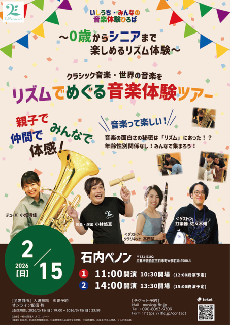 参加者が良く知っている楽曲(童謡、歌謡曲、ジブリの音楽など)を題材に、音楽のリズムに変化を加えその違いを楽しむプログラムと、実際に手拍子などで一緒にカラダを動かして楽しむプログラムを展開する。