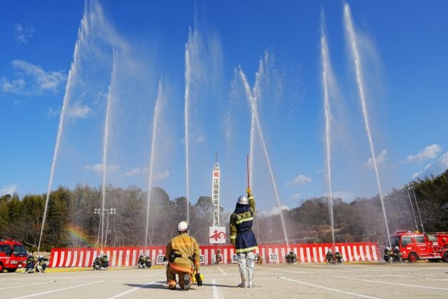 新春恒例の江田島市出初式を開催。災害のない安全で住みよいまちづくりを目指して、江田島市消防本部及び江田島市消防団が保有する近代装備や消防関係機関の勇姿を披露する。迫力ある一斉放水は圧巻。※天候等により会場を屋内に変更する場合あり。