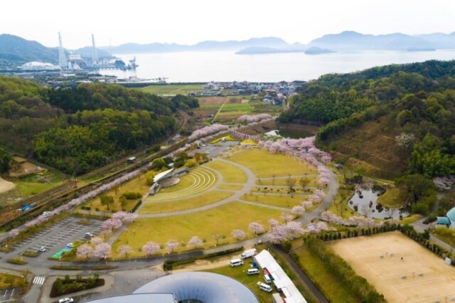 1,300本以上を誇る桜が公園前の道沿いと公園内に咲き乱れ、感動的な美しい景観を見せる。桜の種類が約20種もあるので、3月中旬から4月下旬の長期にかけて楽しめるのも特徴のひとつ。「竹」をテーマとした公園で、2018年に新設した大型遊具や、竹の生態を体験学習ができる「竹の館」、大きな芝生広場や多目的グラウンド、体育館などのスポーツ施設があり、子どもからお年寄りまで楽しめる。