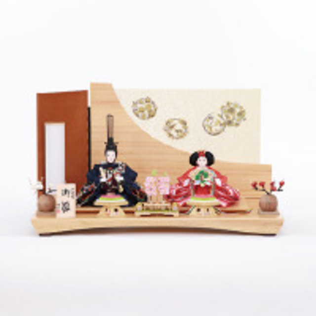 子どもの成長に寄り添うおひな様。 現代の空間に合わせたコンパクトでナチュラル色を使用したモダンな作品等を取り揃えて販売。※親王飾り (約間口60×奥行34×高さ35cm) 176,000円~