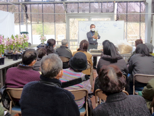 展示温室にて、洋ランの育て方・楽しみ方について実演・解説を行う。講師は広島洋蘭倶楽部会員。定員は、各日先着20名程度。