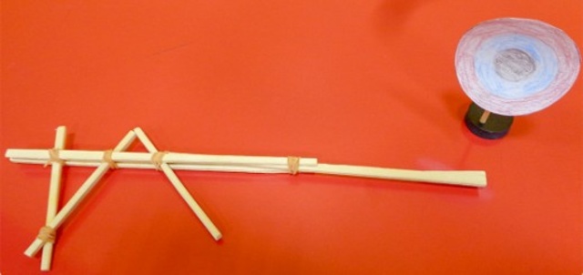 親子で一緒に作る工作教室。わりばしと輪ゴムを使って鉄砲を作ってみよう。対象は幼児~小学生と保護者。定員各回15組(1組の人数は最大6人(保護者含む)まで)。整理券が必要。
