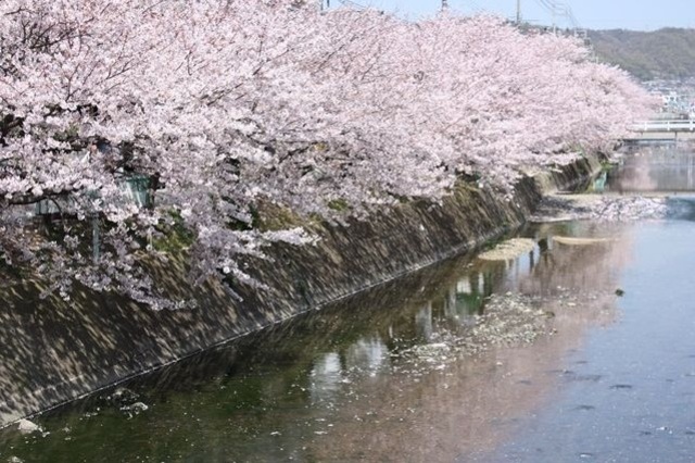 国道184号線沿いに流れる川べりの約1.7kmに渡り桜並木が広がっている。ここの桜が咲くのを楽しみにしているドライバーも多いのでは。ただし、きれいだからと言って、よそ見にはご注意を。散歩はもちろん、レンタサイクルを借りてのんびりサイクリングもおすすめ。