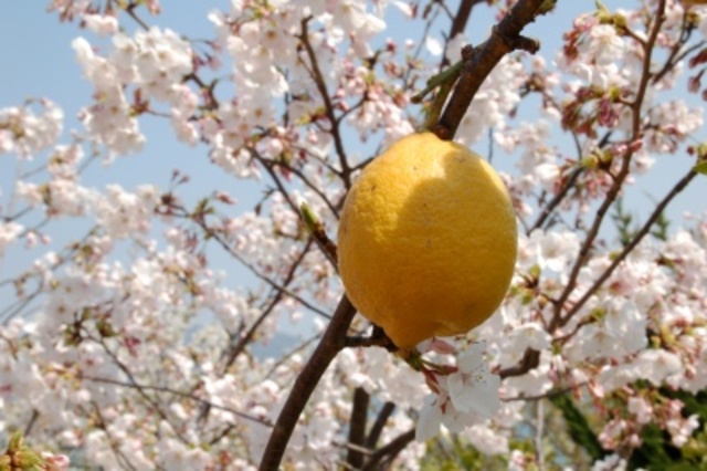 桜の花と柑橘を一緒に楽しめる