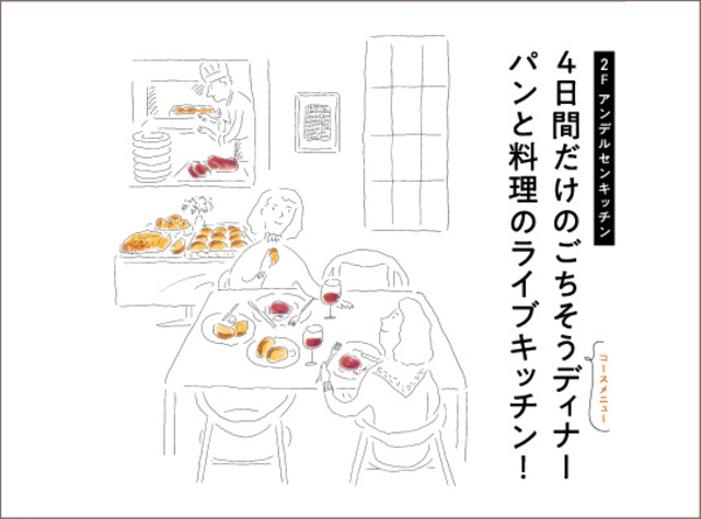 広島県産の旬食材を生かした料理に加え、フロア中央には料理との相性を考えて選んだパンが並ぶブレッドカウンターが登場。シェフが目の前で仕上げるライブキッチンの臨場感やパンを選ぶ楽しさもこのディナーの魅力。メニューの一例(計5品)広島サーモン 彩り野菜とレモンのレムラード・菊芋のポタージュ焼あじのエキューム・広島県産穀美豚のグリル 石窯で焼いたグリル野菜と味噌のソース 他。