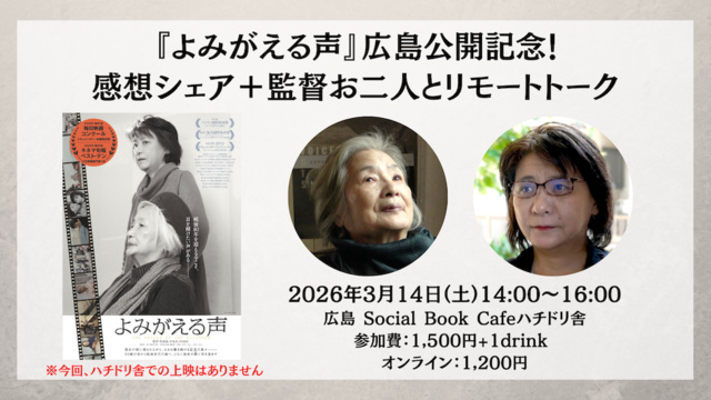 1935年生まれの朴壽南監督は、1965年から広島の朝鮮人被爆者の声なき声を掘り起こし記録してきた。映画には広島や長崎で原爆被害を受けた朝鮮人、長崎の軍艦島に連行された徴用工、沖縄戦の朝鮮人軍属、そして日本軍の「慰安婦」にされた女性たちの声なき声がよみがえる。その記憶と記録を継承して共同監督した娘の朴麻衣さんと朴壽南監督をゲストに迎え、ハチドリ舎で一緒に語らう。 ※ハチドリ舎での上映はない