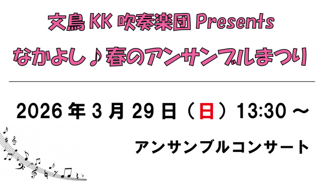 文鳥KK吹奏楽団によるアンサンブルコンサートを開催。フルートアンサンブル、木管五重奏、2チームによるアンサンブルコンサート。