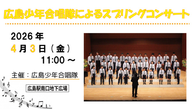 広島少年合唱隊によるスプリングコンサートを広島駅南口地下広場で開催。子どもたちの合唱をぜひ聞きに出かけよう。