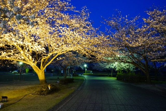 約1,300本の桜が植えられているピースリーホーム バンブー総合公園で、開花時期にライトアップを実施。昼間とは異なる、幻想的な夜桜を楽しもう。