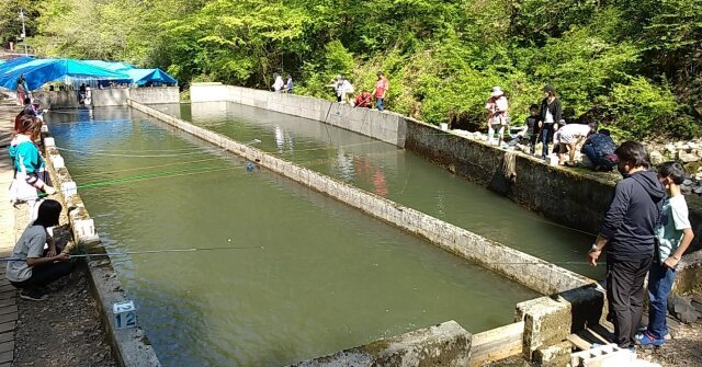 ニジマスを釣って観察しよう。釣ったニジマスを間近で観察する時間は、図鑑では得られない貴重な学び。二本の割りばしで内臓を取る『ツボヌキ』、自分で塩をまぶし、自分で炭で焼く。わからないことは教えてもらえるが、基本はセルフ。みんなで協力して釣ったニジマスを塩焼きにして食べよう。自分で釣って自分で焼いたニジマスの味はとても新鮮で美味。