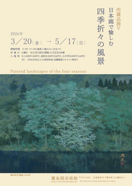 所蔵作品より日本画で描かれた四季の風景を紹介する。明治期の新たな表現の広がりから戦後の抽象的な風景画に至るまでその変遷をたどりつつ、季節に寄せる画家たちの感性を提示する。