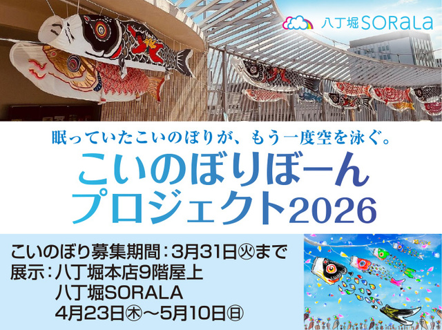 眠っていたこいのぼりが、この春、街の空へ。Alkemixとともに生まれ変わる、再生アートプロジェクト。※Alkemix(アルケミクス) 東広島を拠点に、障がいのある人のアート活動を支援するアート事業。家庭で眠っているこいのぼりを集め、回収したこいのぼりはこの春、アーティストとともに再生アートとして生まれ変わる。あなたの思い出を、広島の空へ。3月28日(土)には再生アートワークショップも開催。