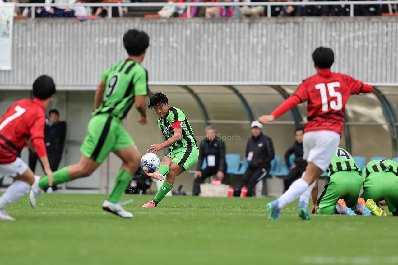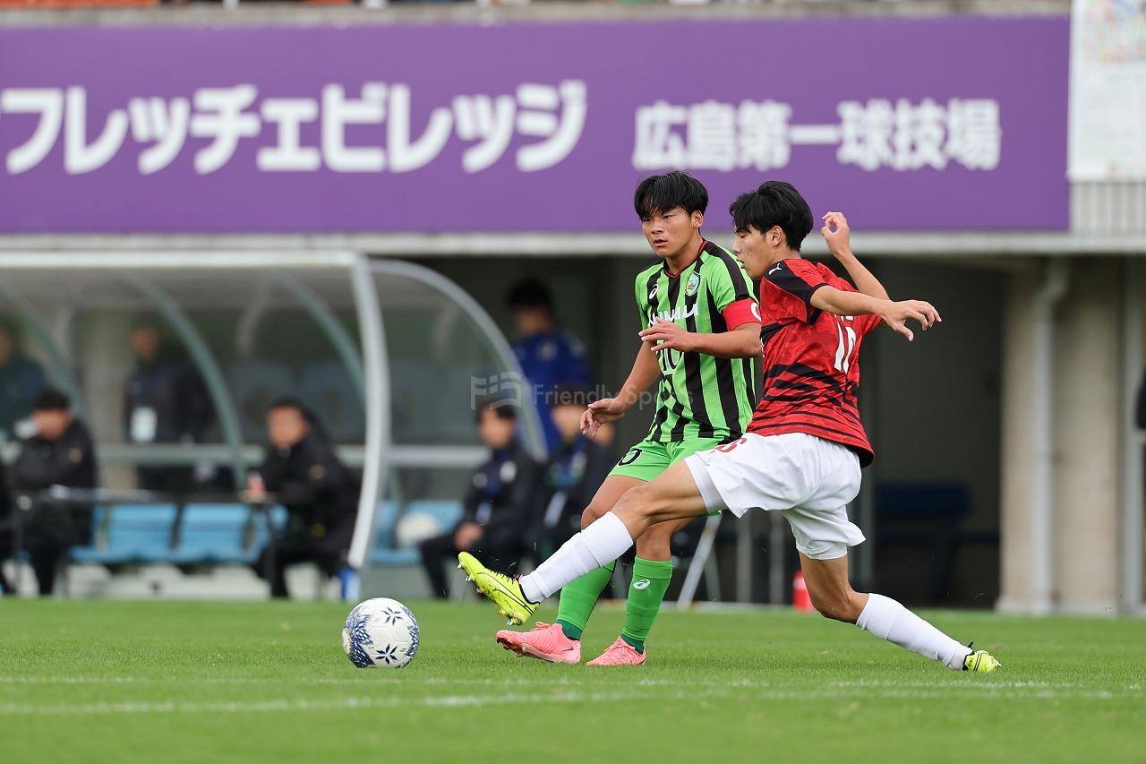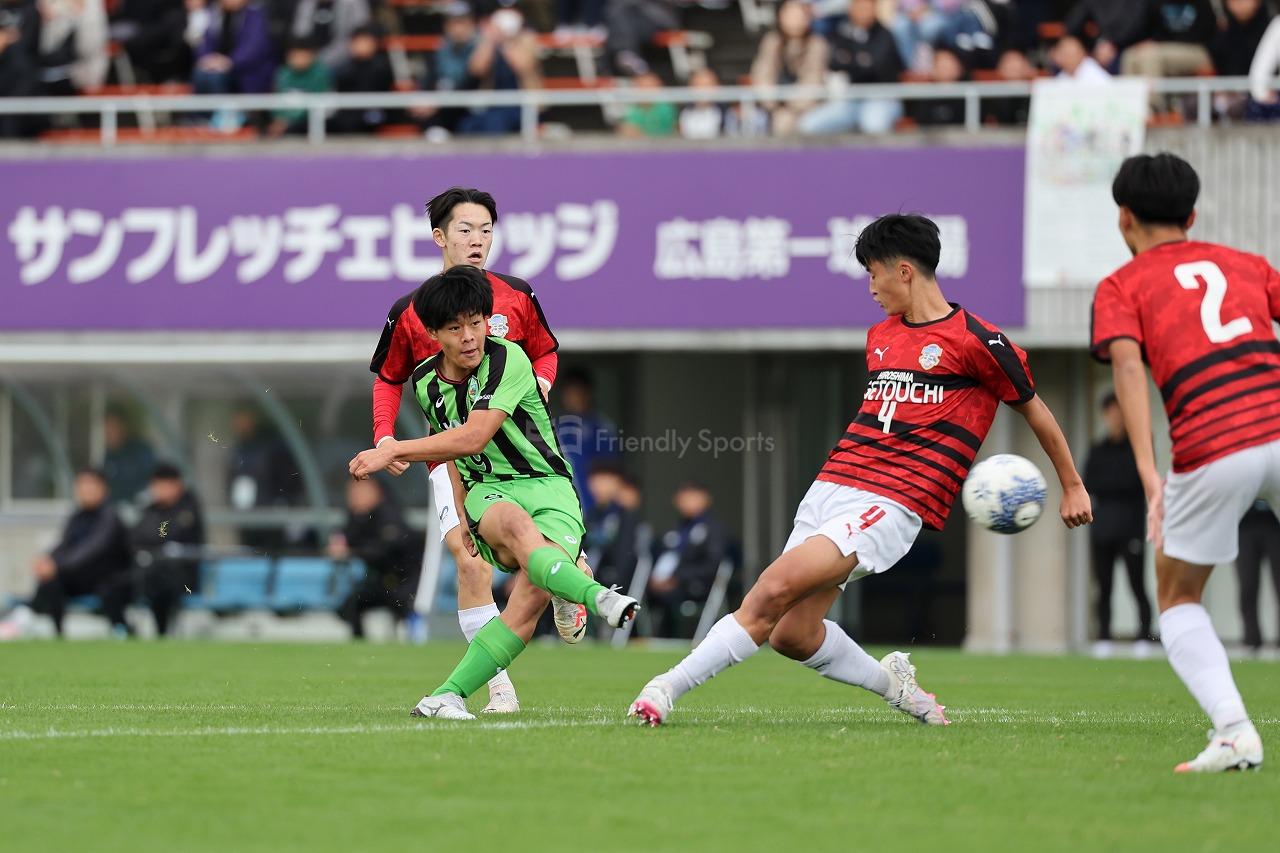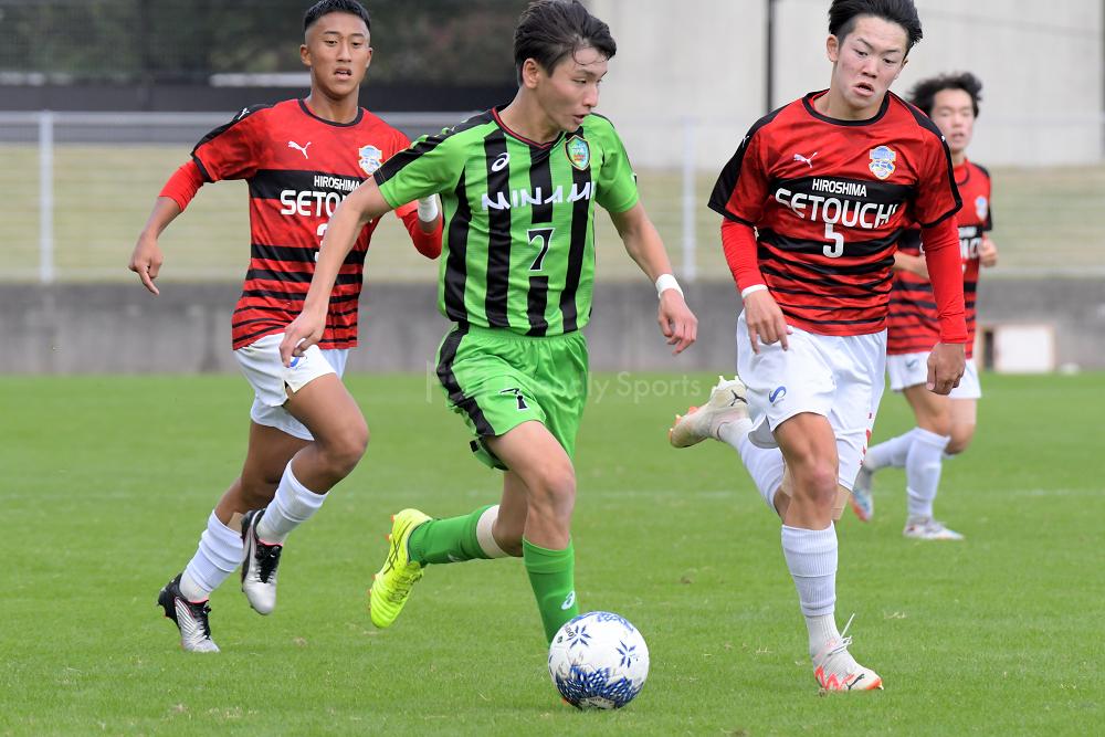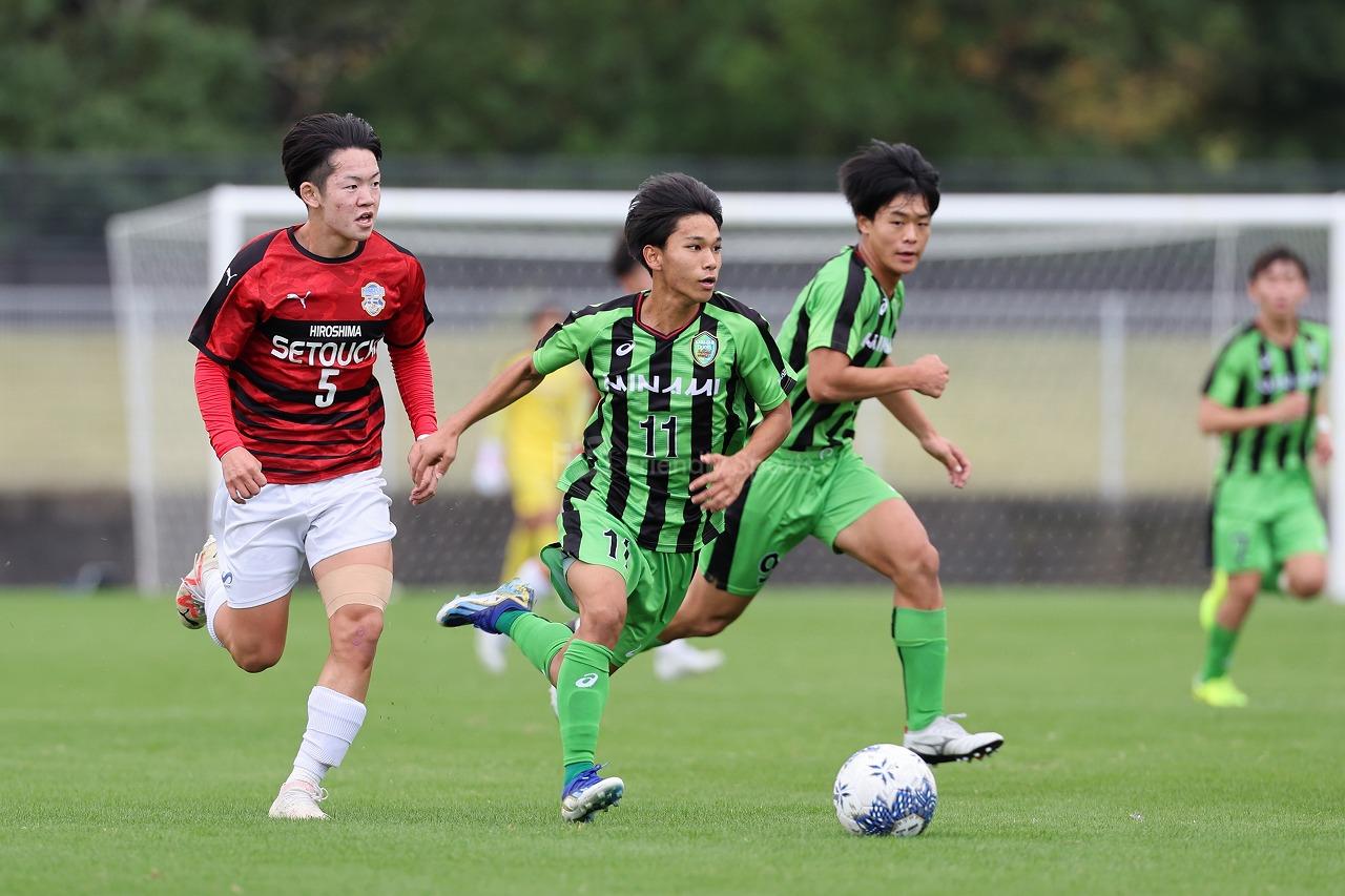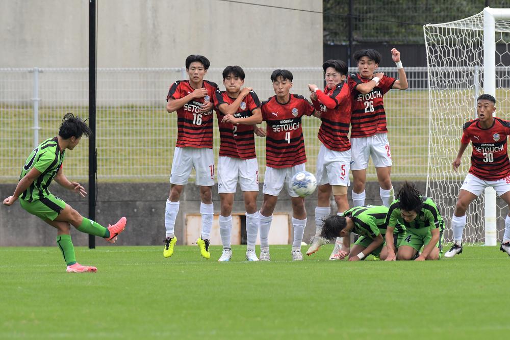 瀬戸内1点のリードのまま時間は進み、このまま瀬戸内の逃げ切りかと思われたが、広島皆実はカウンターから土壇場で追いつく。さらに試合終了目前、絶好の位置でFKを獲得すると、皆実エース10番が直接決め逆転し、ロスタイムにも追加点を決めます。