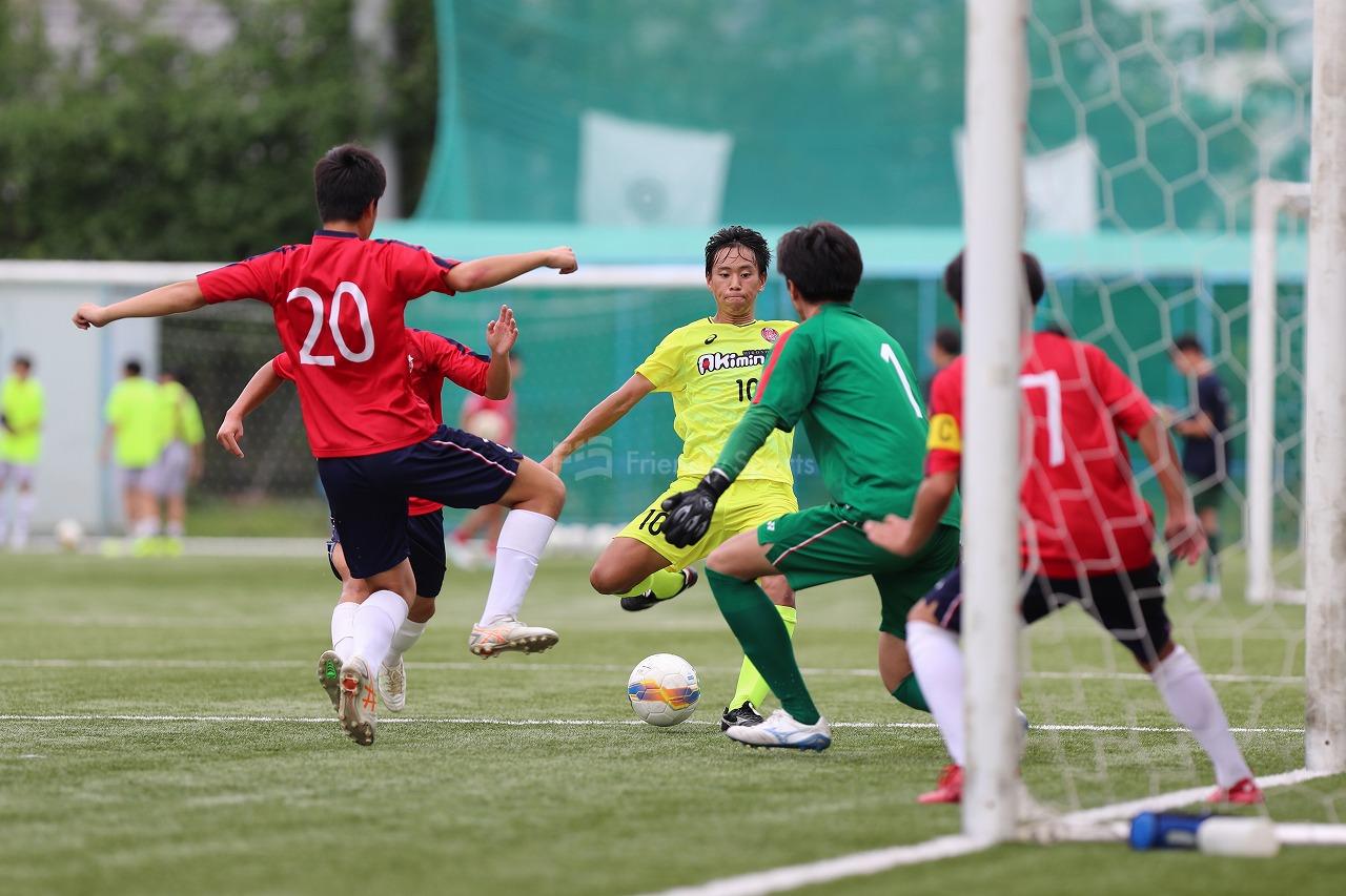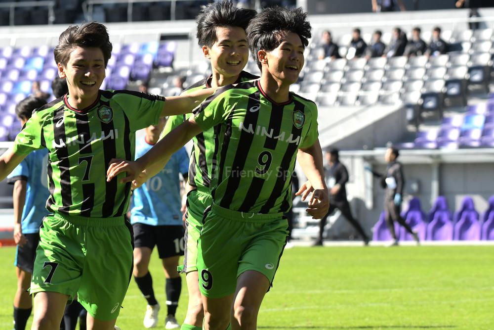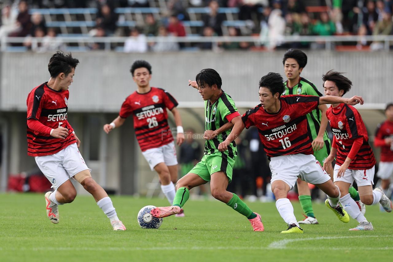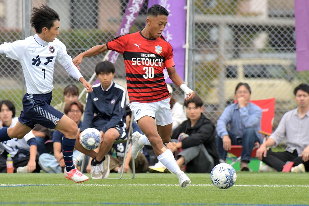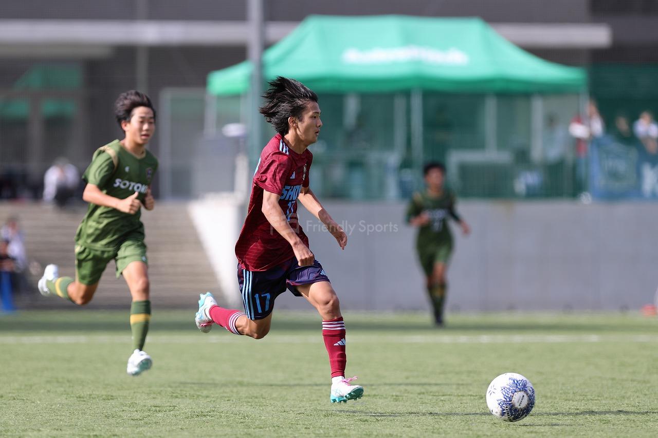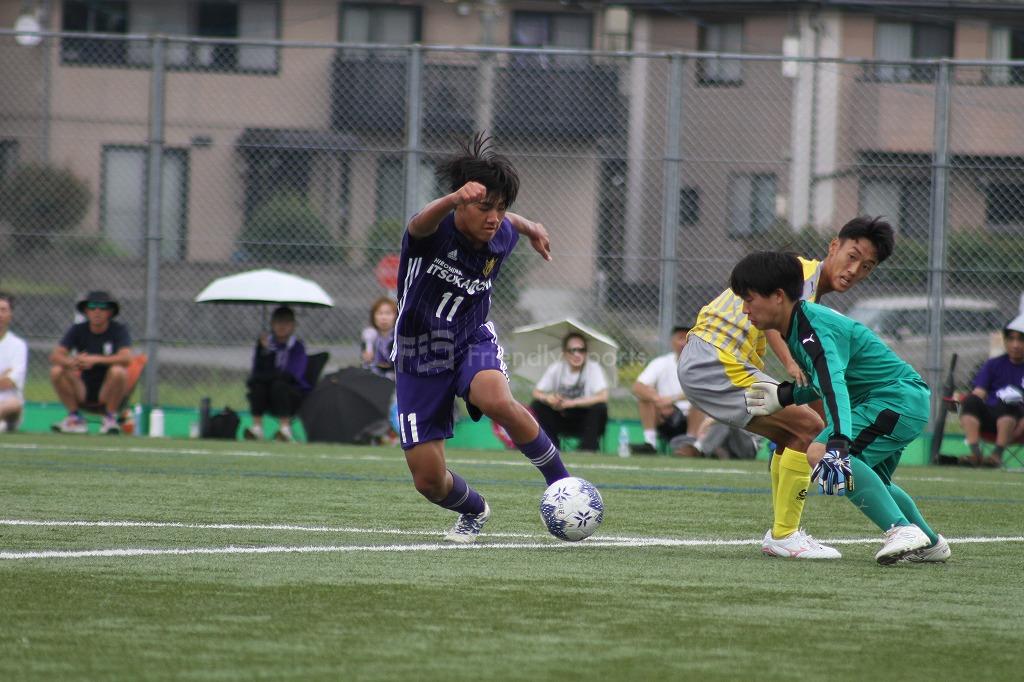 瀬戸内1点のリードのまま時間は進み、このまま瀬戸内の逃げ切りかと思われたが、広島皆実はカウンターから土壇場で追いつく。さらに試合終了目前、絶好の位置でFKを獲得すると、皆実エース10番が直接決め逆転し、ロスタイムにも追加点を決めます。