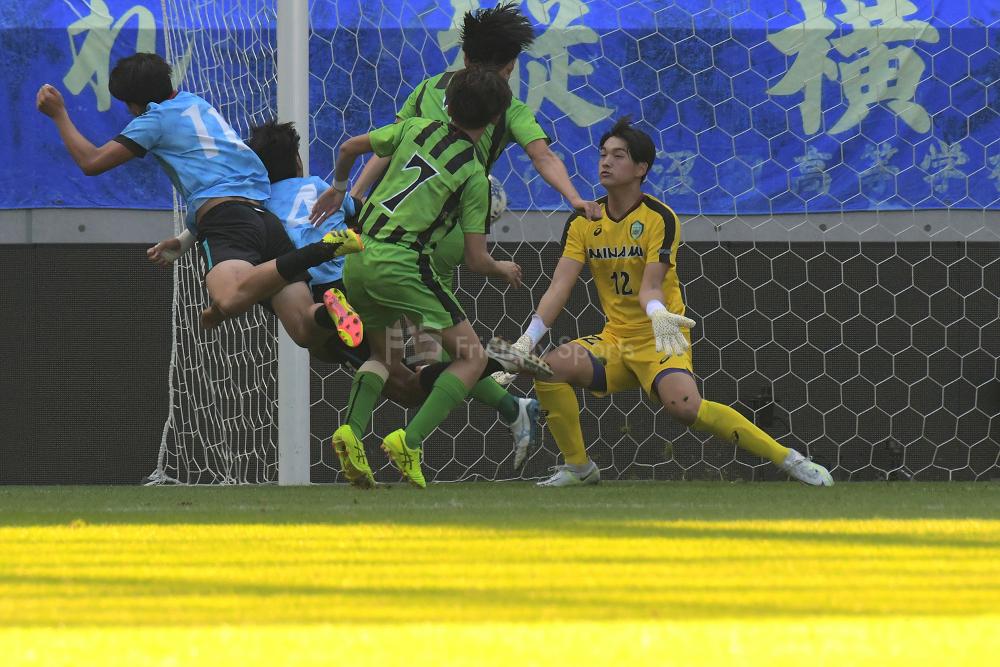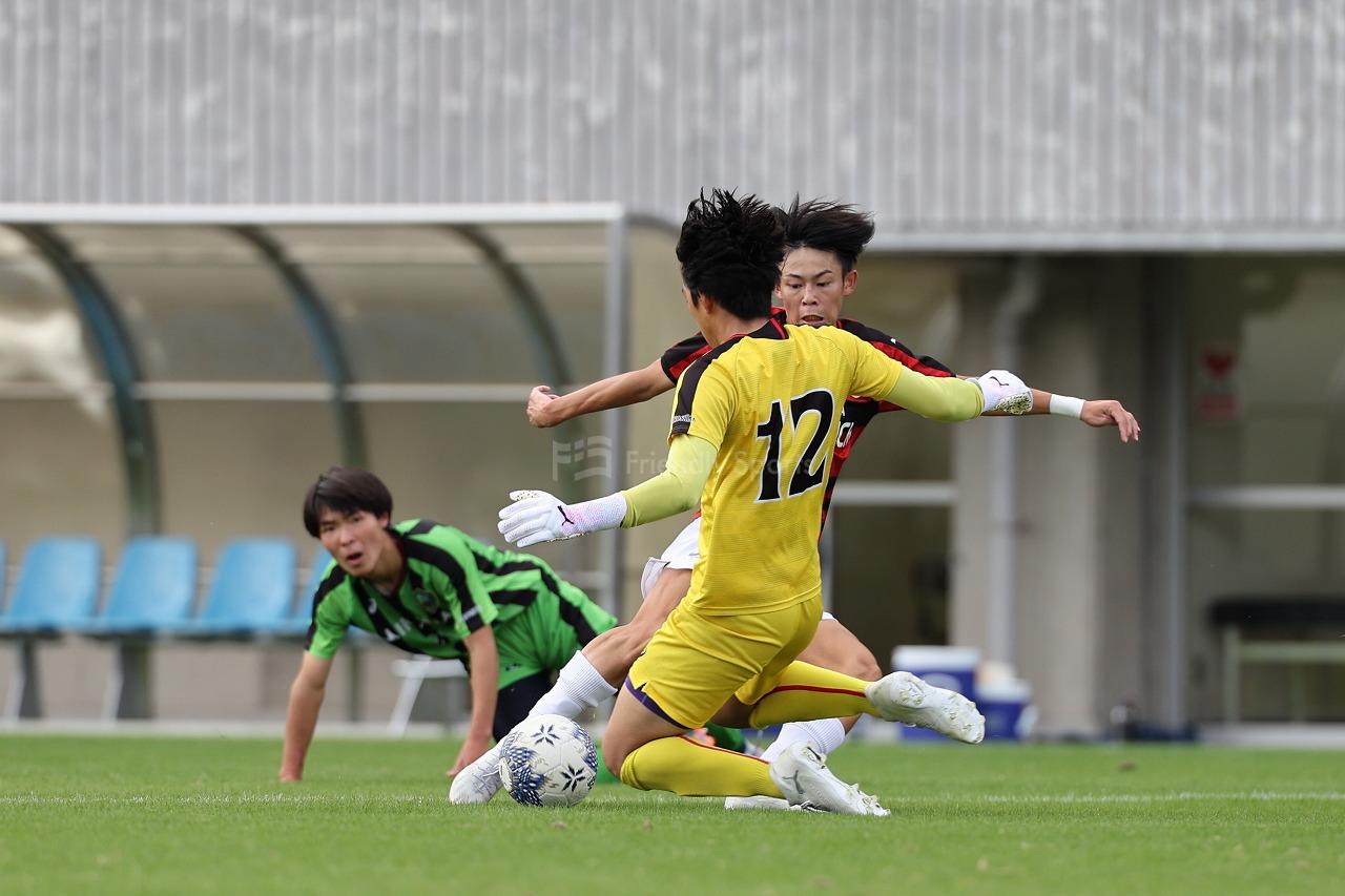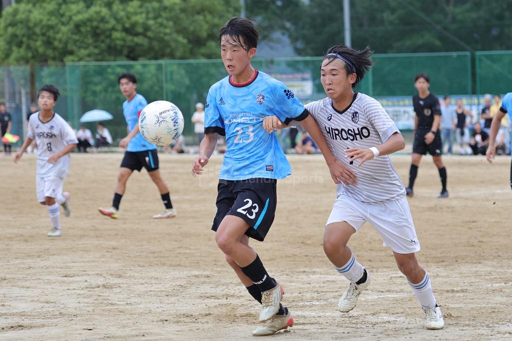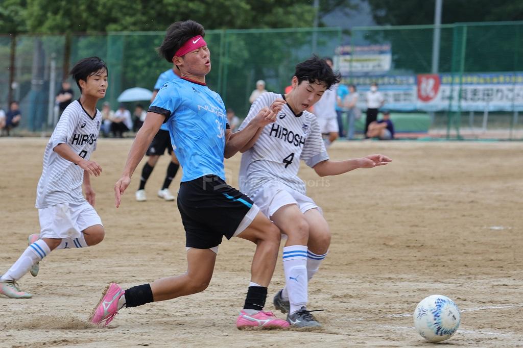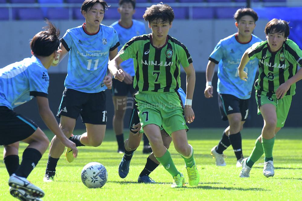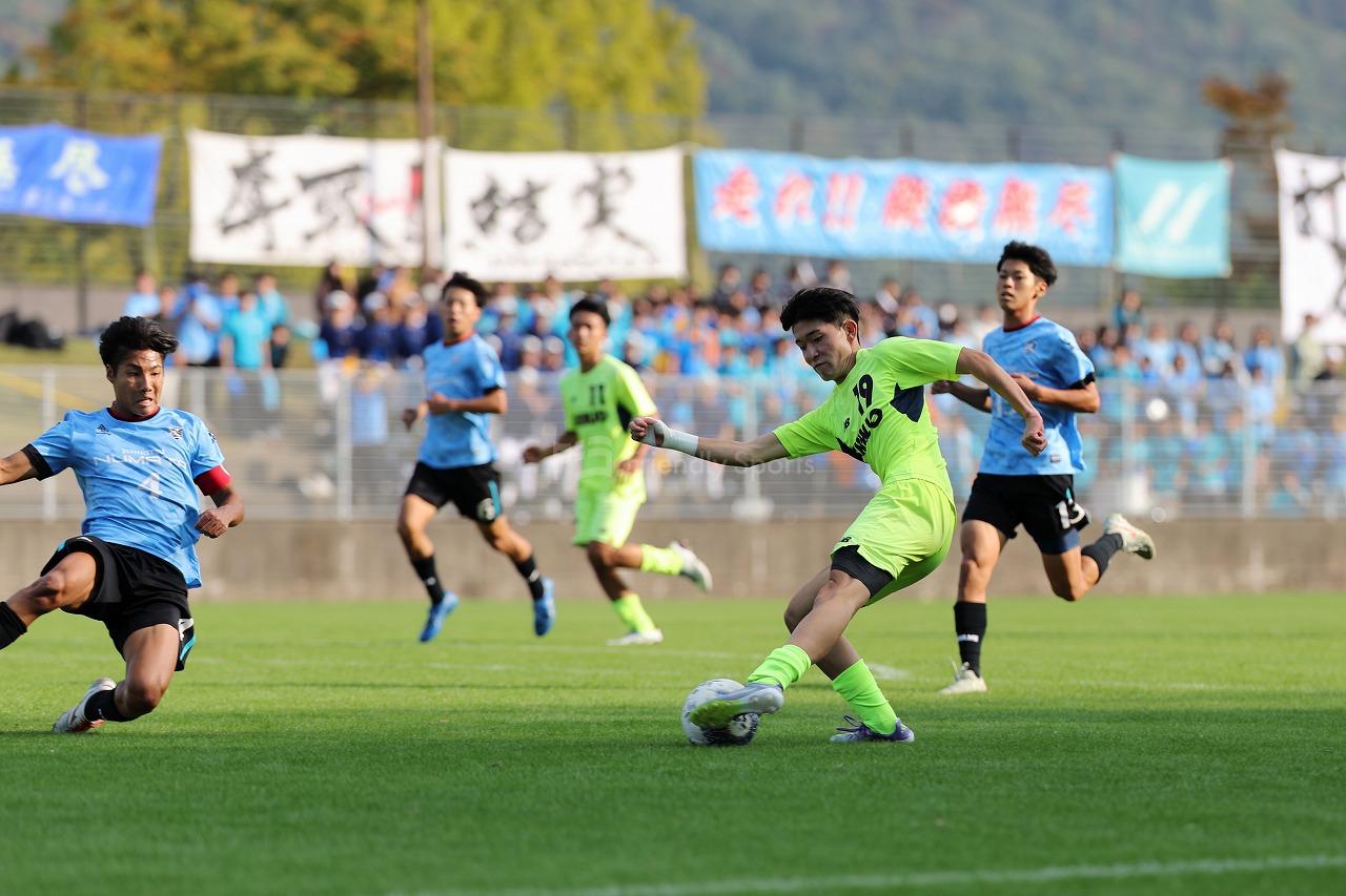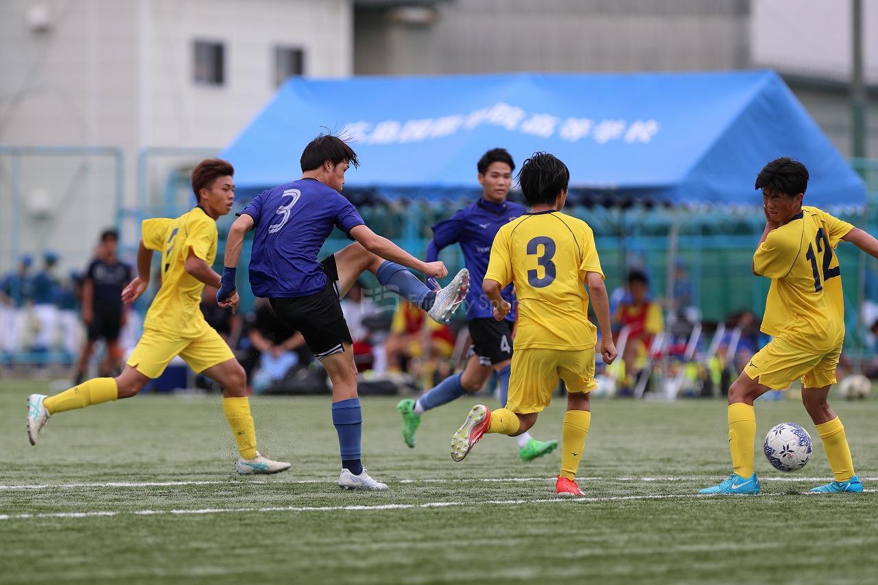 瀬戸内1点のリードのまま時間は進み、このまま瀬戸内の逃げ切りかと思われたが、広島皆実はカウンターから土壇場で追いつく。さらに試合終了目前、絶好の位置でFKを獲得すると、皆実エース10番が直接決め逆転し、ロスタイムにも追加点を決めます。