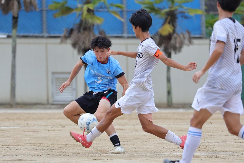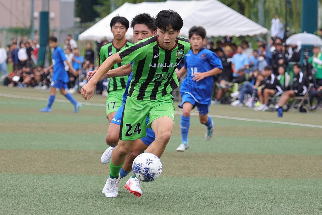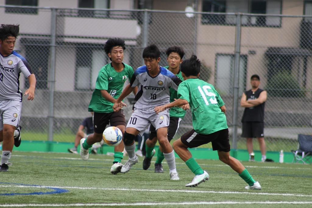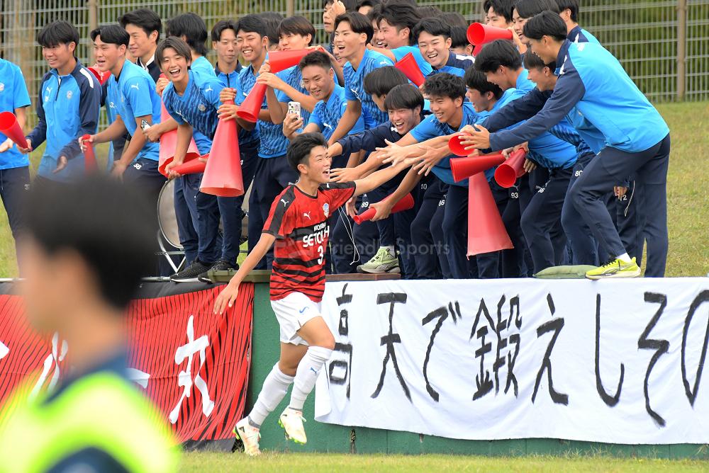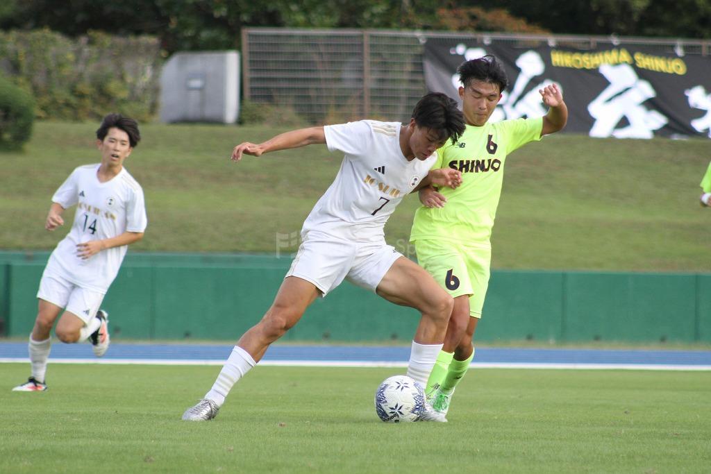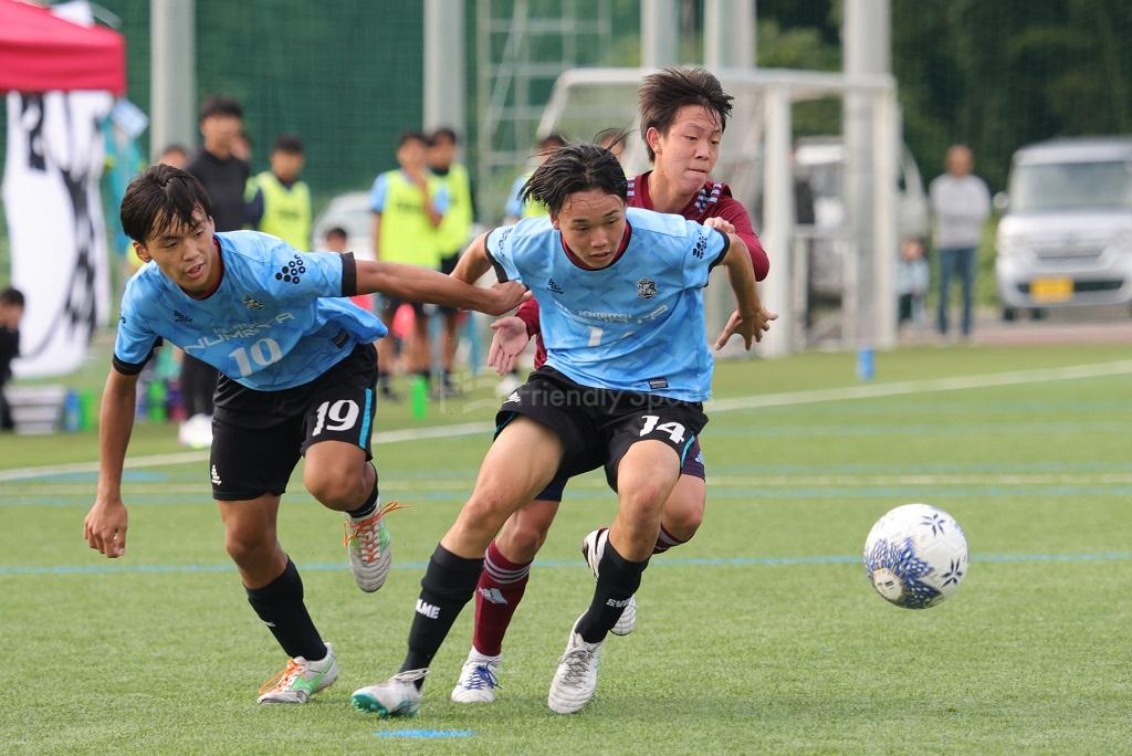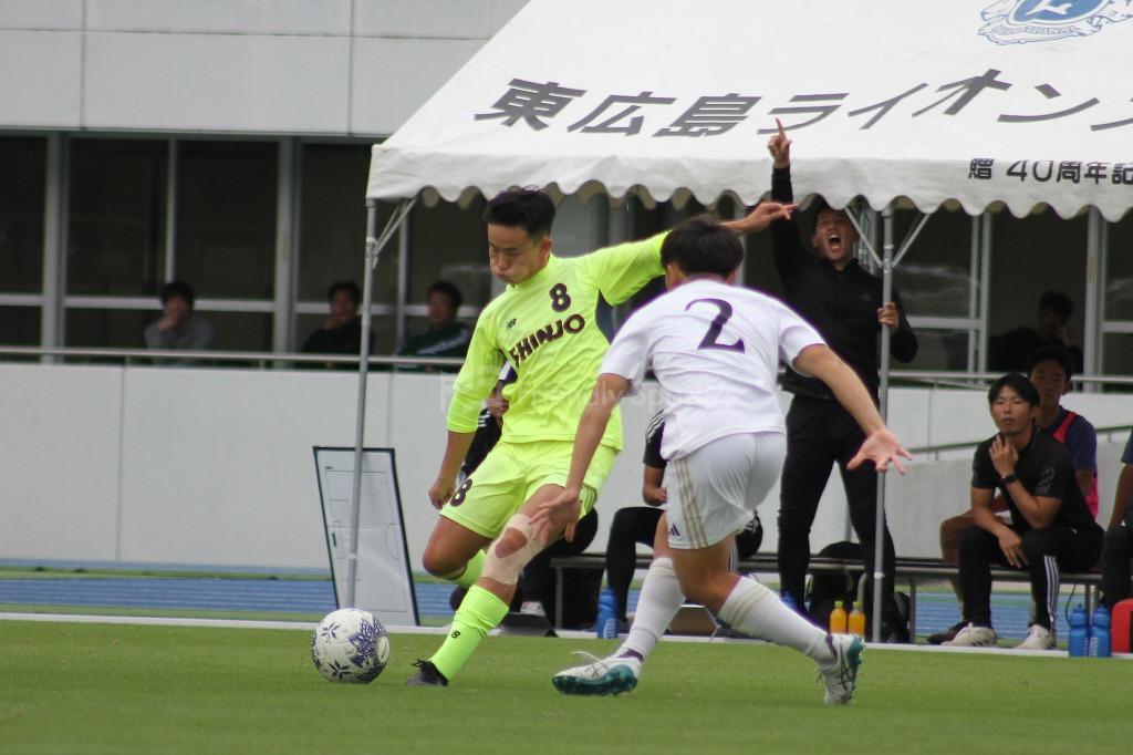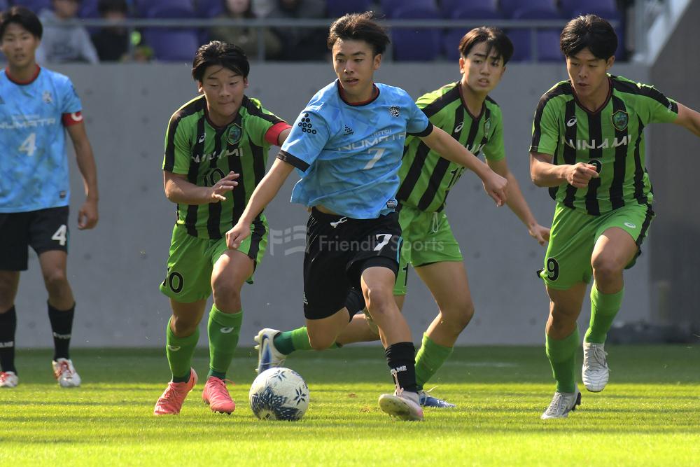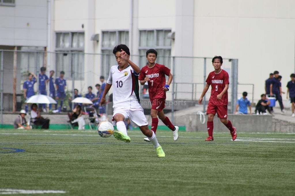 瀬戸内1点のリードのまま時間は進み、このまま瀬戸内の逃げ切りかと思われたが、広島皆実はカウンターから土壇場で追いつく。さらに試合終了目前、絶好の位置でFKを獲得すると、皆実エース10番が直接決め逆転し、ロスタイムにも追加点を決めます。