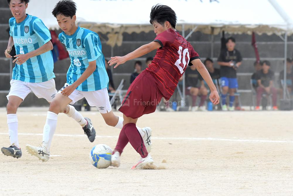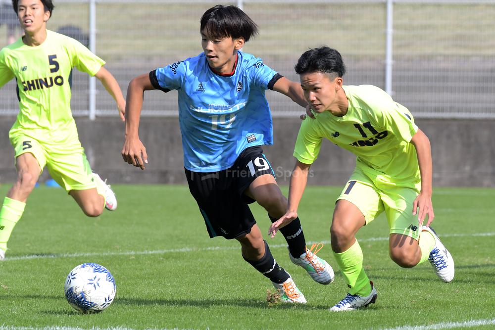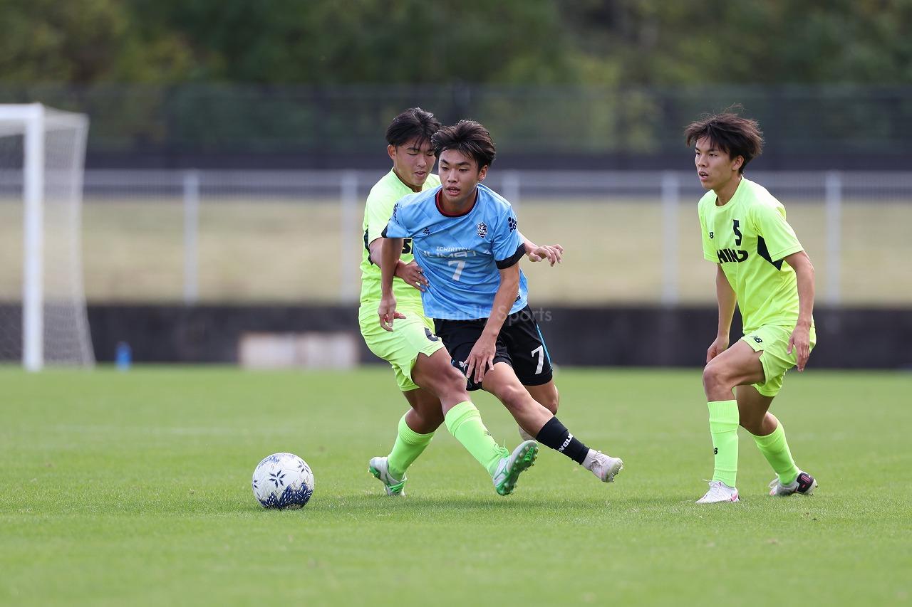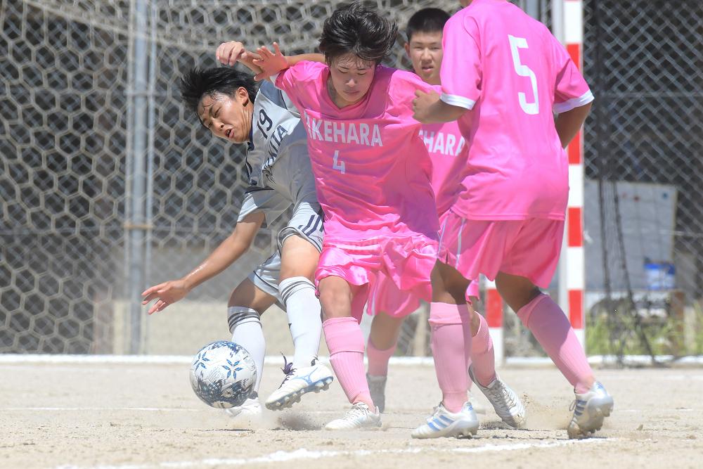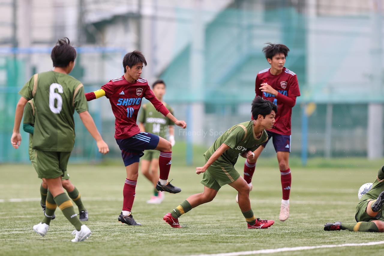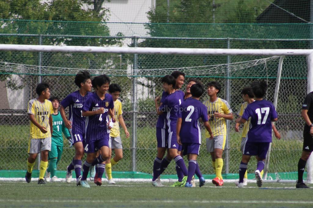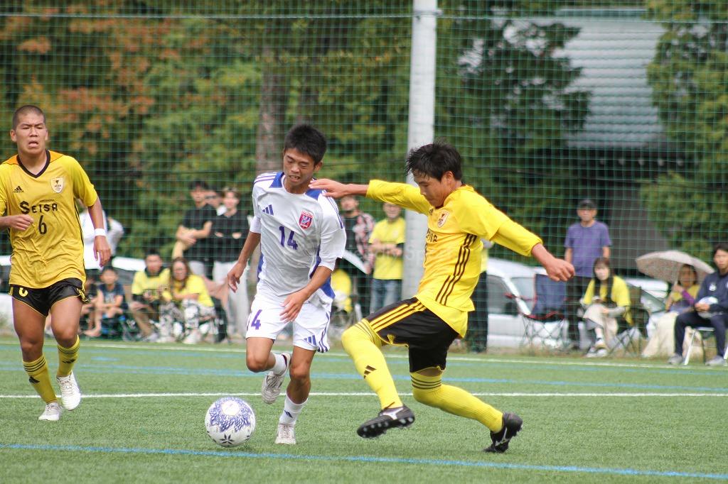 瀬戸内1点のリードのまま時間は進み、このまま瀬戸内の逃げ切りかと思われたが、広島皆実はカウンターから土壇場で追いつく。さらに試合終了目前、絶好の位置でFKを獲得すると、皆実エース10番が直接決め逆転し、ロスタイムにも追加点を決めます。