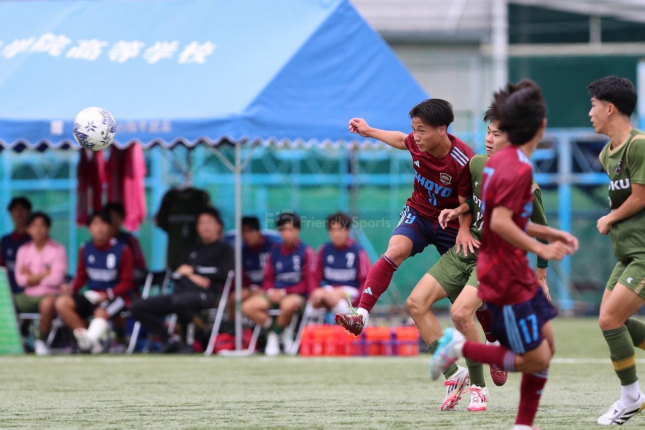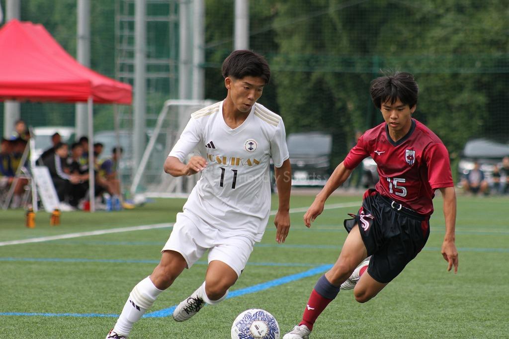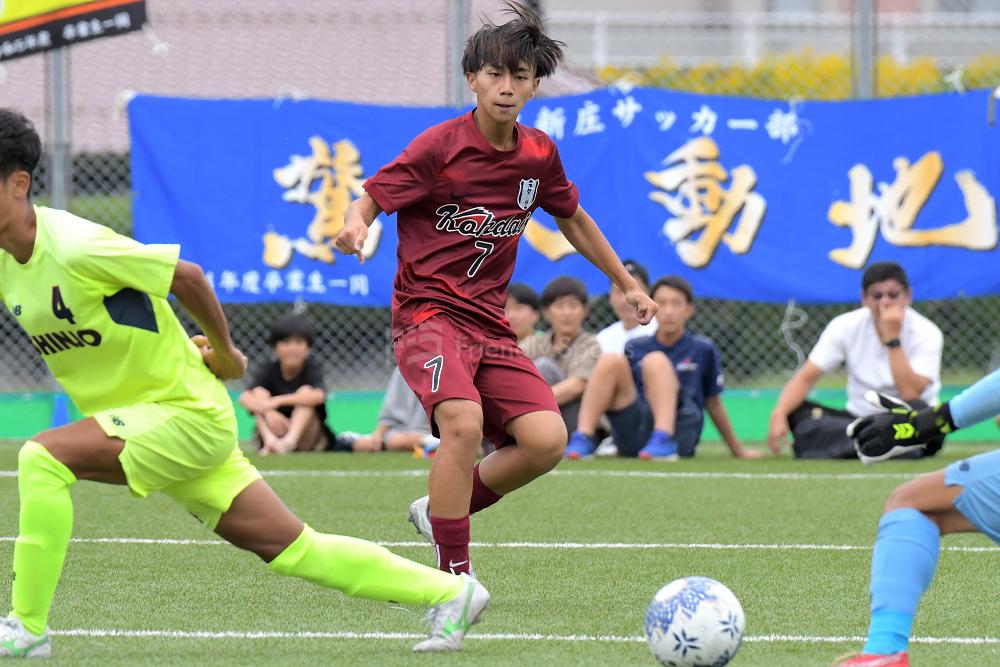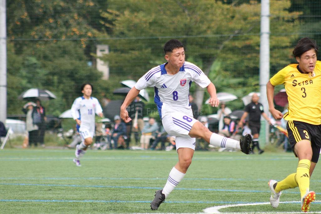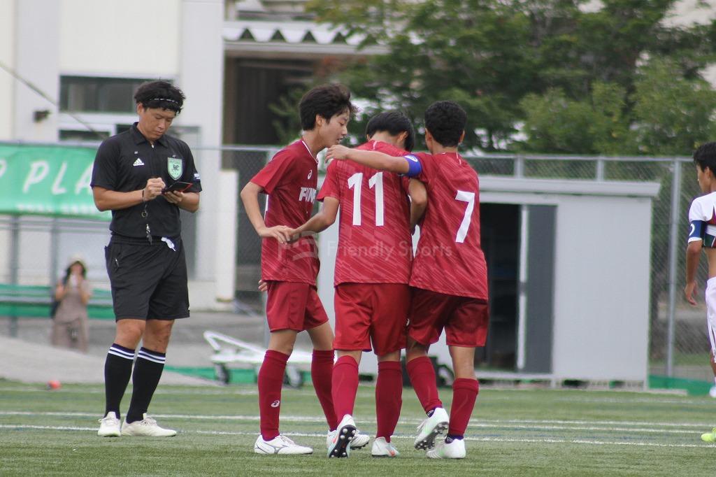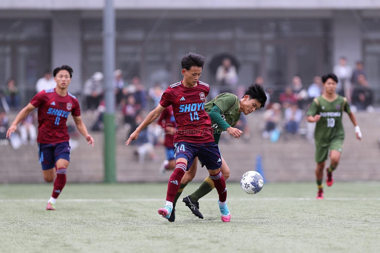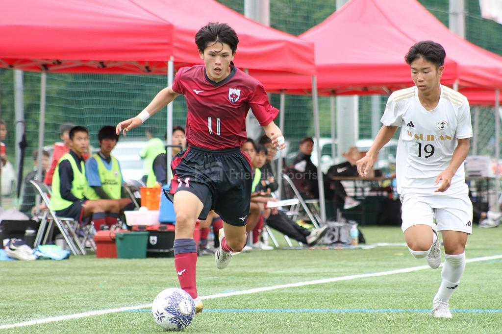 瀬戸内1点のリードのまま時間は進み、このまま瀬戸内の逃げ切りかと思われたが、広島皆実はカウンターから土壇場で追いつく。さらに試合終了目前、絶好の位置でFKを獲得すると、皆実エース10番が直接決め逆転し、ロスタイムにも追加点を決めます。