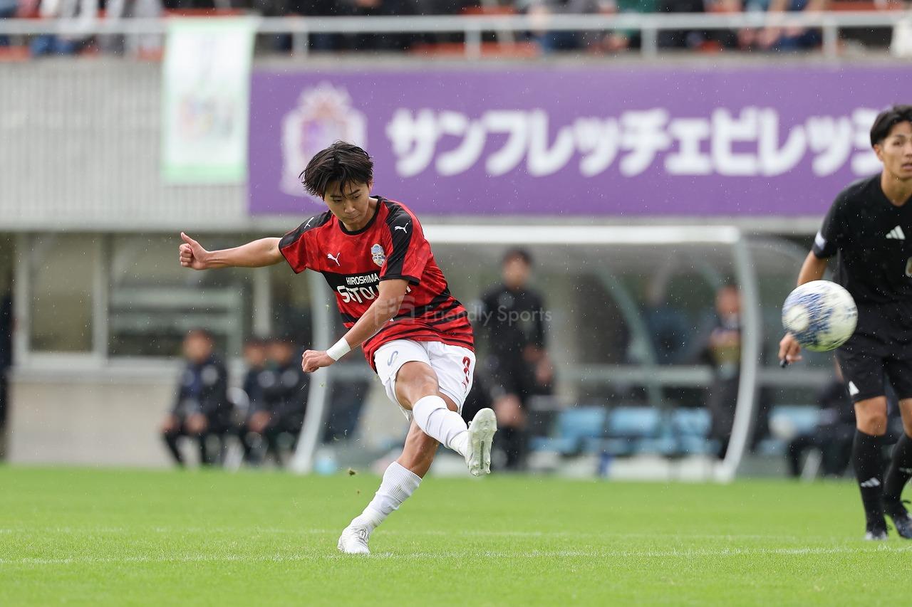 試合開始、広島皆実が早い時間帯で先制点を決め、後半にも1点を追加します。