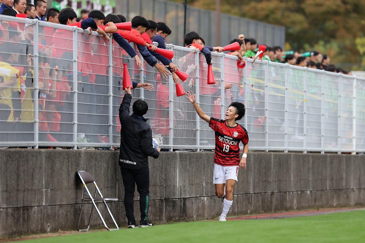 延長前半に沼田10番がロングパスに反応しゴール前でダイレクトボレーシュートを決めると、さらにゴール前の狭い場所で細かくつなぎ追加点を決めます。